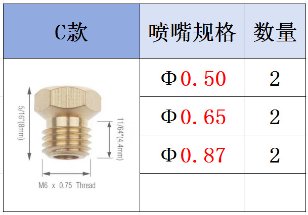 喷嘴(C款)0.5*2+0.65*2+0.87*2