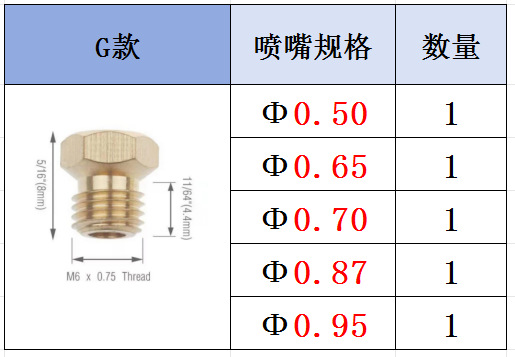 喷嘴(G款)0.5+0.65+0.7+0.87+0.95