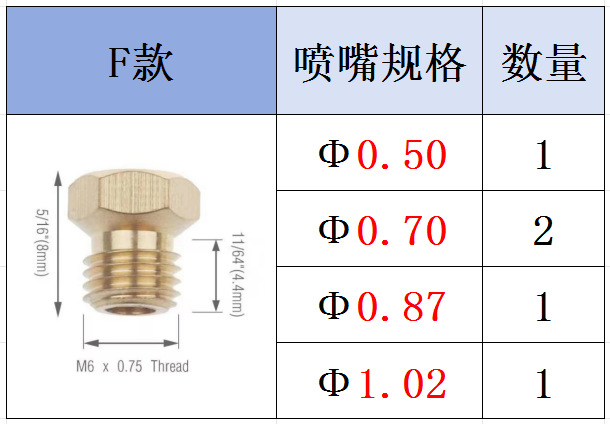 喷嘴(F款)0.5+0.7*2+0.87+1.02