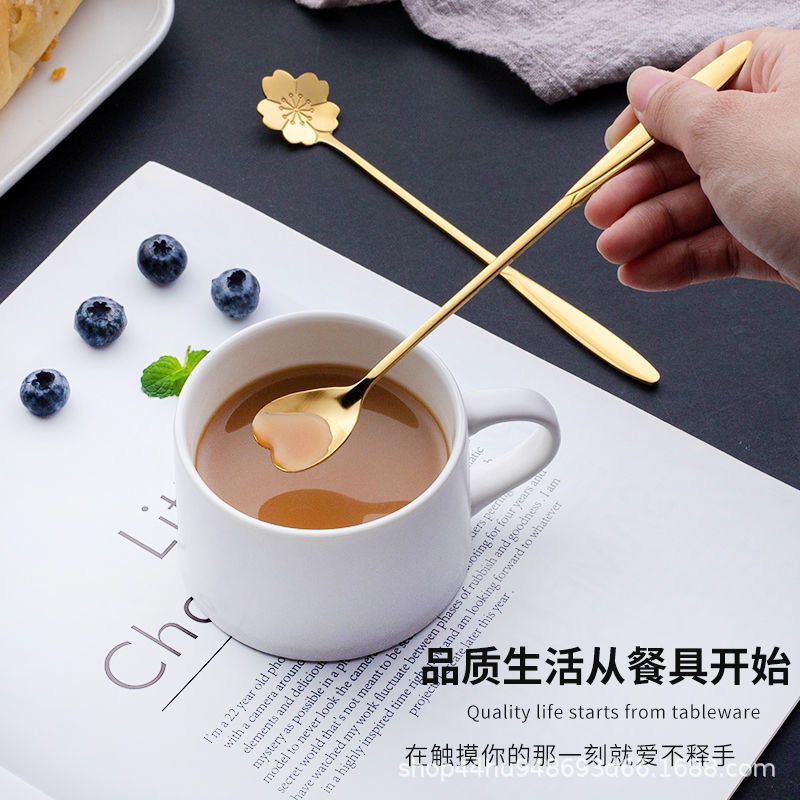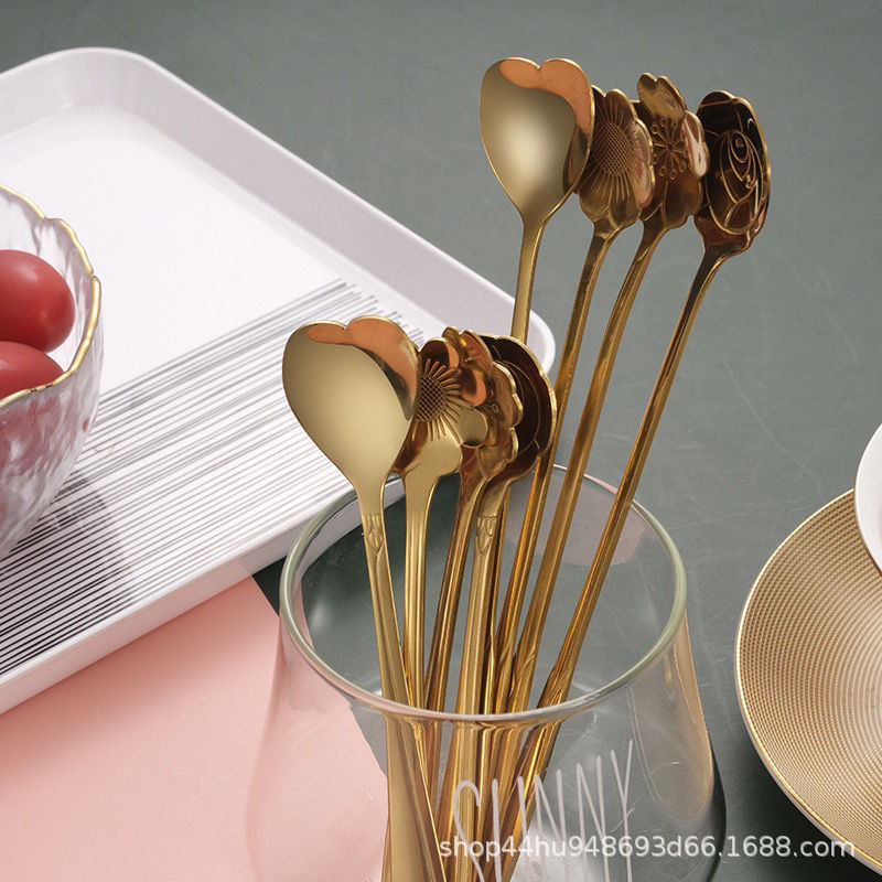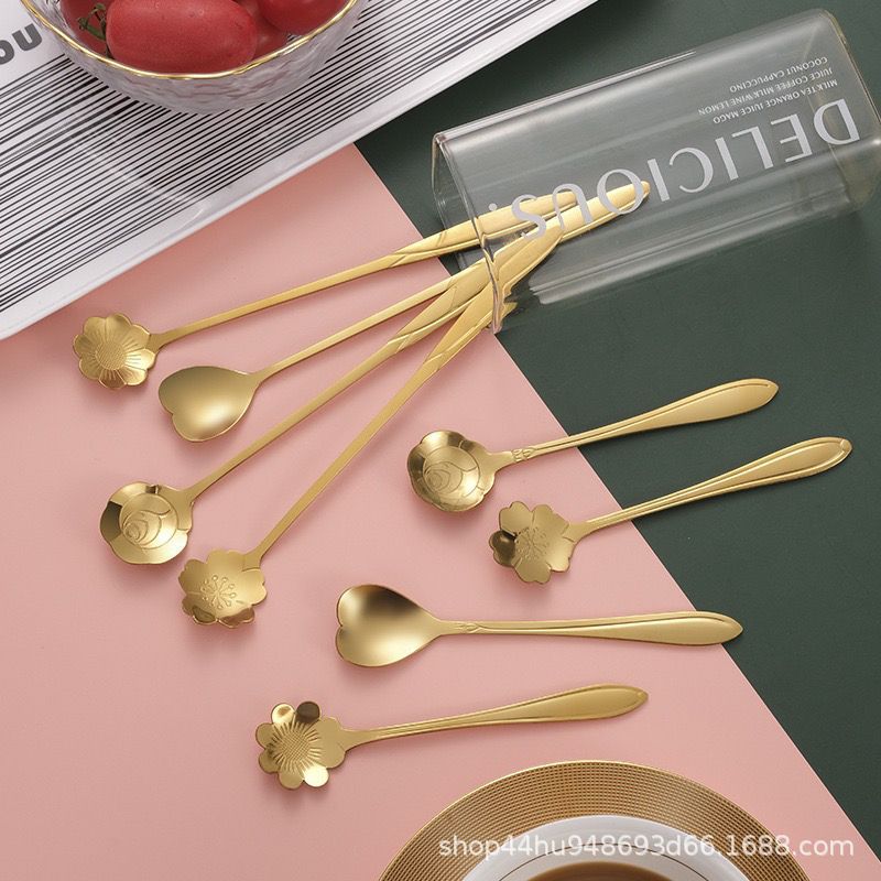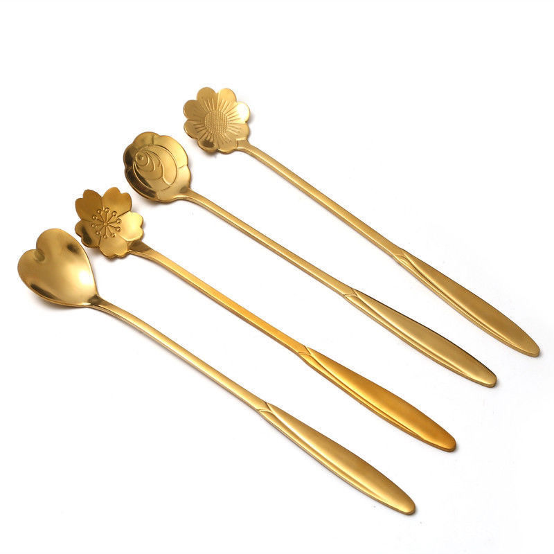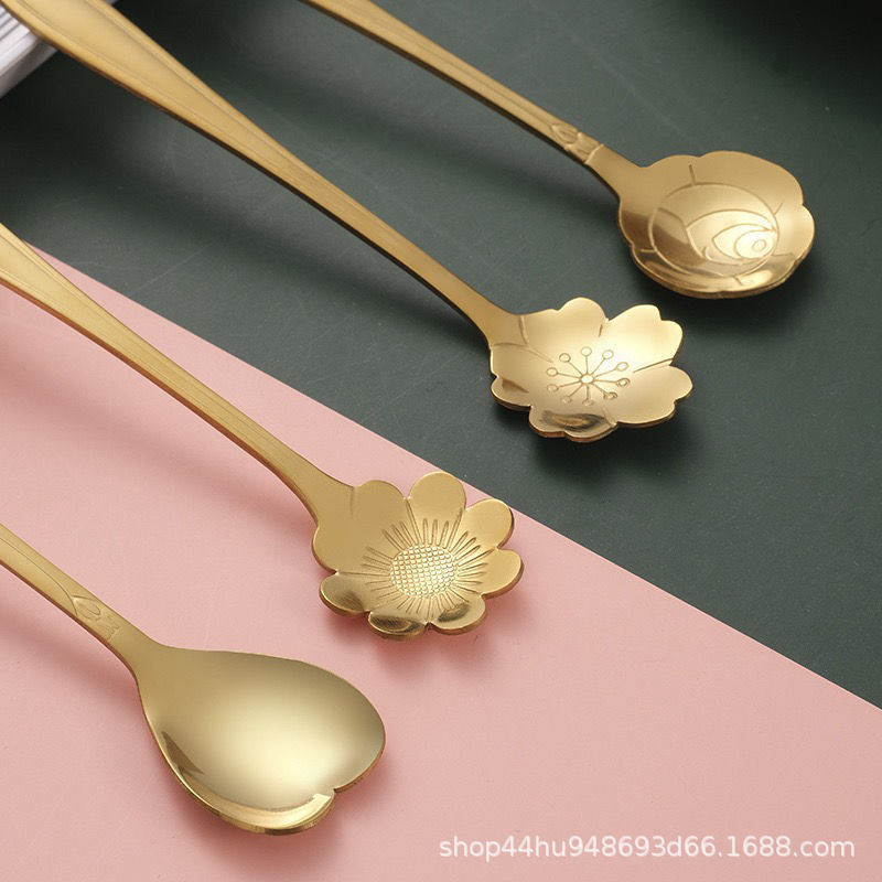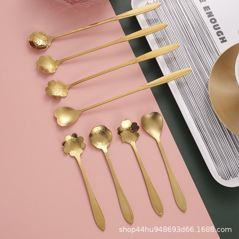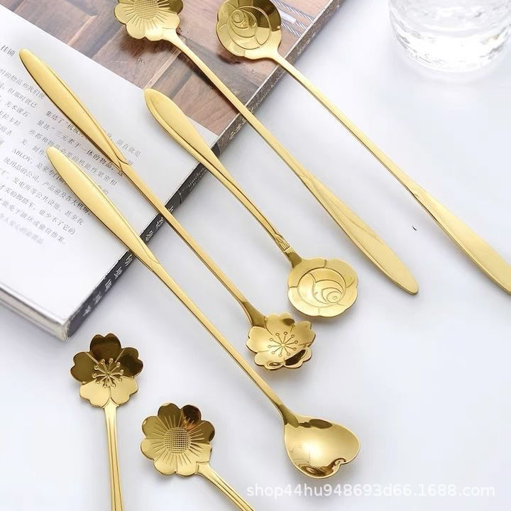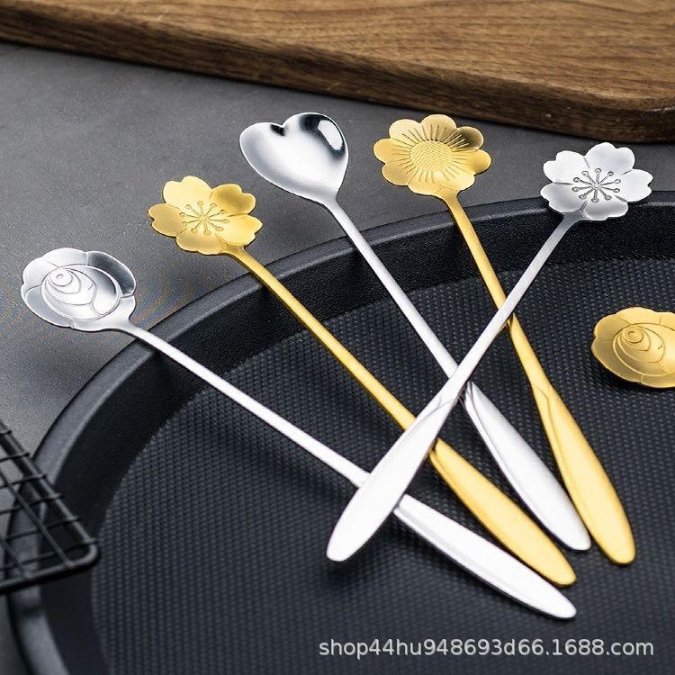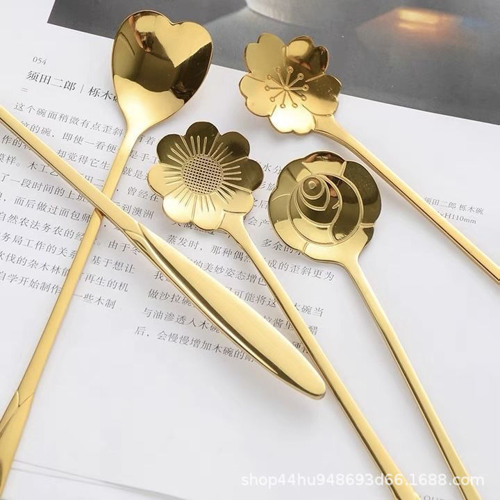 Ложка вишневого цвета Фабрика Оптовая Нержавеющая сталь Ложка розы Ложка любви Кофейная ложка Медовая десертная ложка Золотая ложка вишневого цвета
