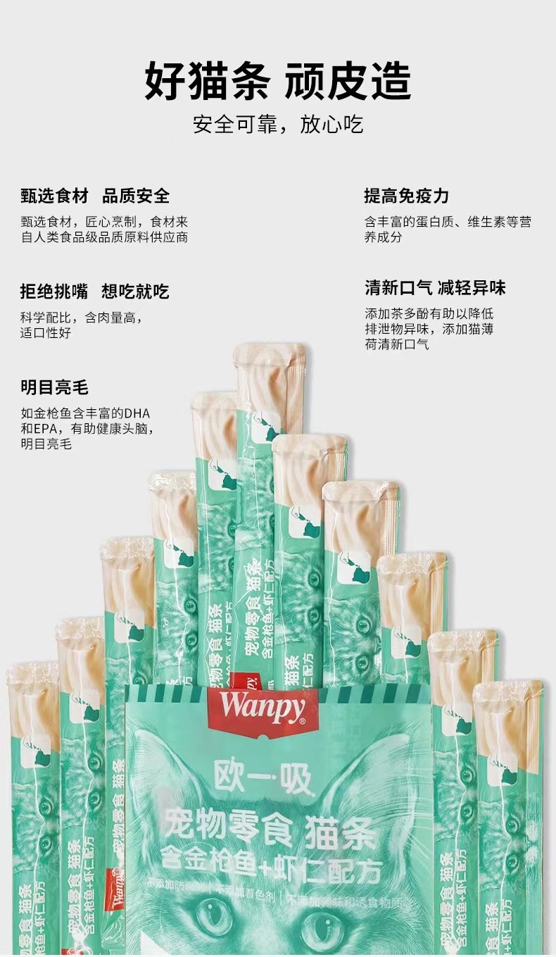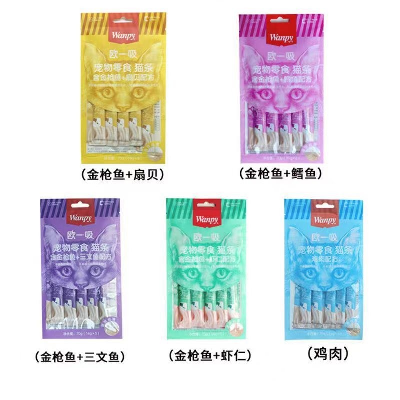 Лакомство для кошек Naughty Wanpy Ou Yi, натуральное питательное лакомство для взрослых и котят для набора веса, 14 г * 5 шт./упаковка, оптом.