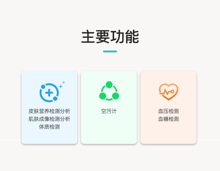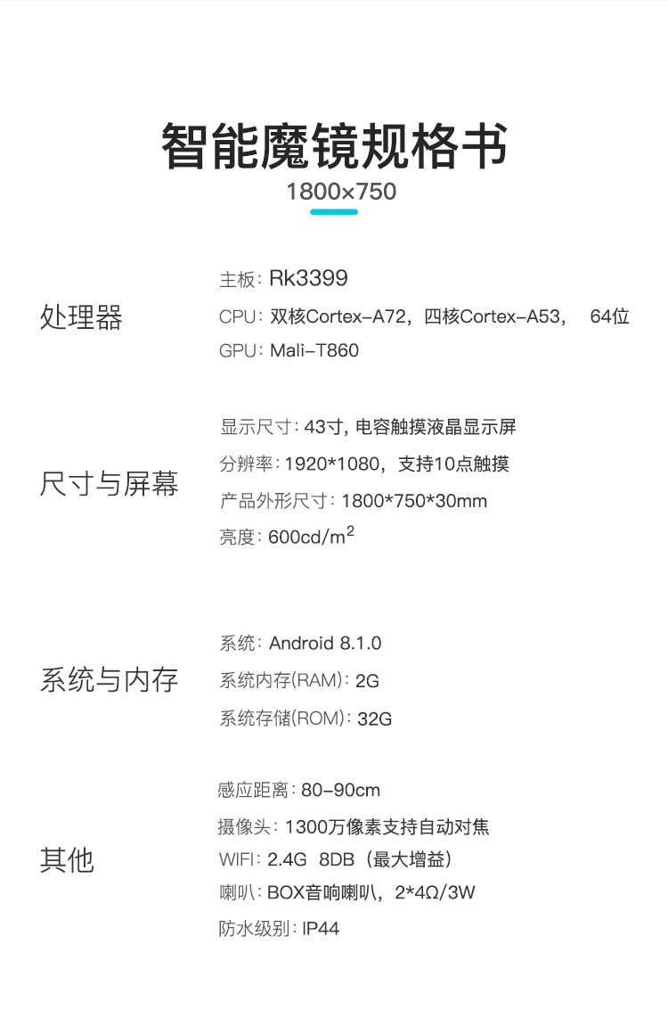 包装清单:智能魔镜|电源适配器|挂件|说明书( 含三包凭证)。不包含:皮肤检测仪|光谱分析仪|体质仪|空污计|血糖仪|血压仪|USB摄像头,客户需要可联系客服够买。