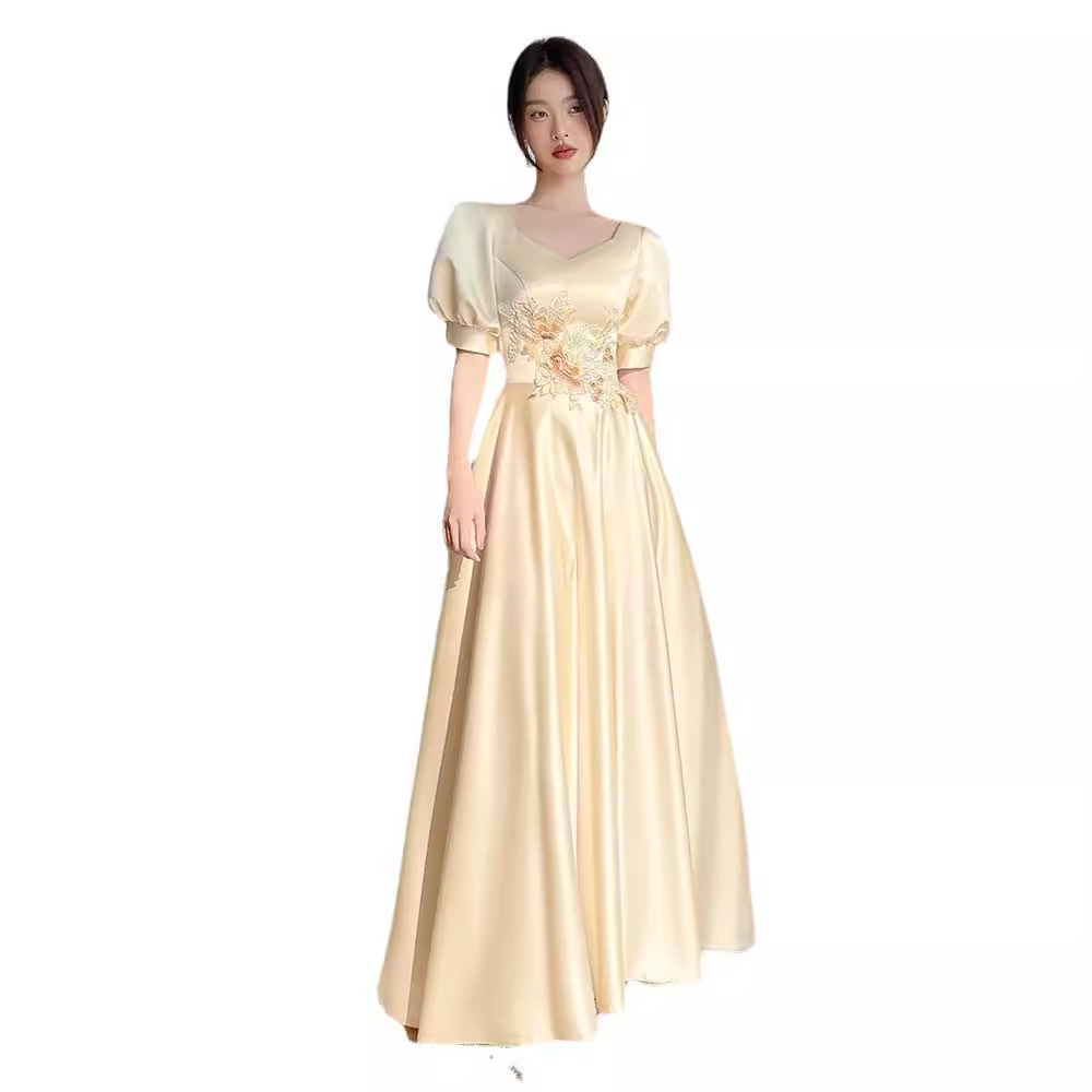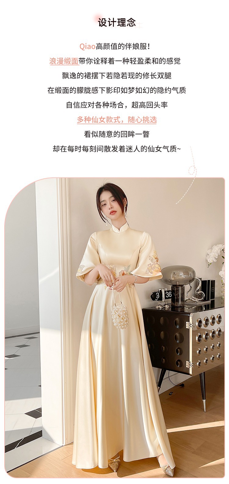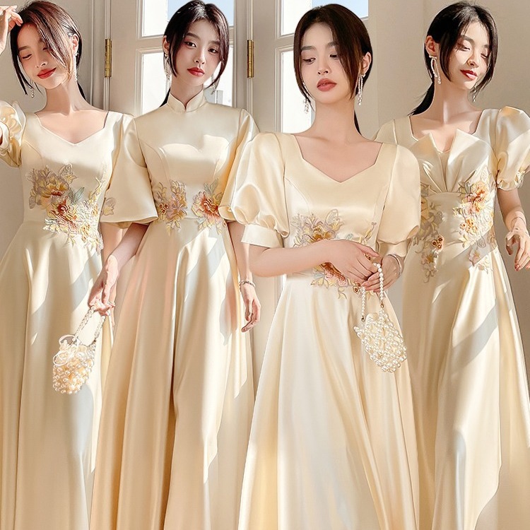 Шампанское атласное платье для невесты 2024 новая летняя длинная ниша старшая чувственная сестринская юбка женская китайская