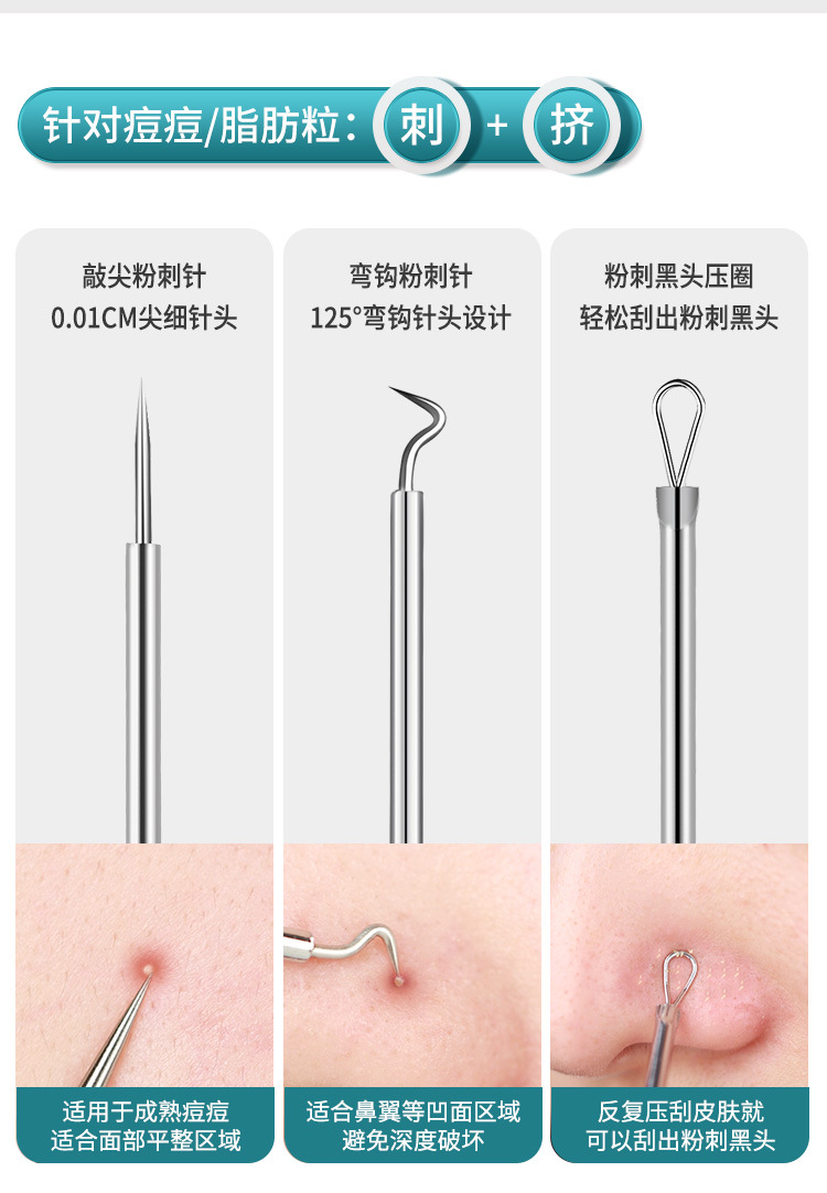 GECOMO Super Tip Зажим для клеток Костюм для игл от прыщей Ультратонкий Пинцет для удаления черных точек Скребок Закрытая игла для удаления прыщей Инструмент красоты