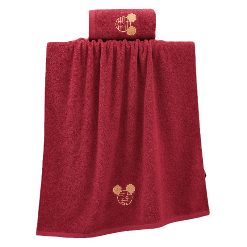 Хлопковое свадебное банное полотенце винно-красный 32-прядный Микки Привет Не легко выцветает, выцветает, Свадебная подарочная коробка, хлопковое свадебное банное полотенце