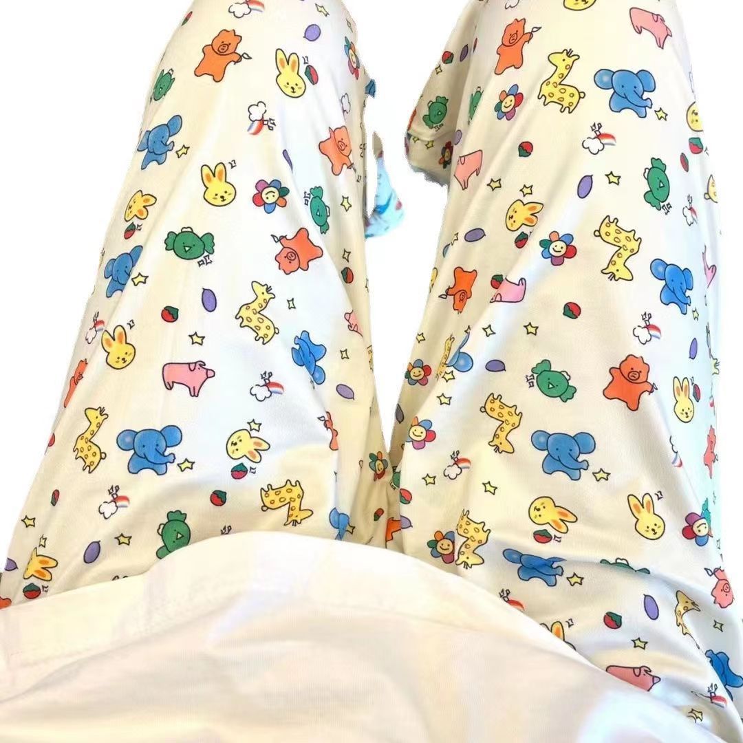 Длинные брюки с мультяшным принтом, пижамные брюки для женщин, тонкие домашние брюки для весны и осени, можно носить на улице, повседневная домашняя одежда с рисунком.