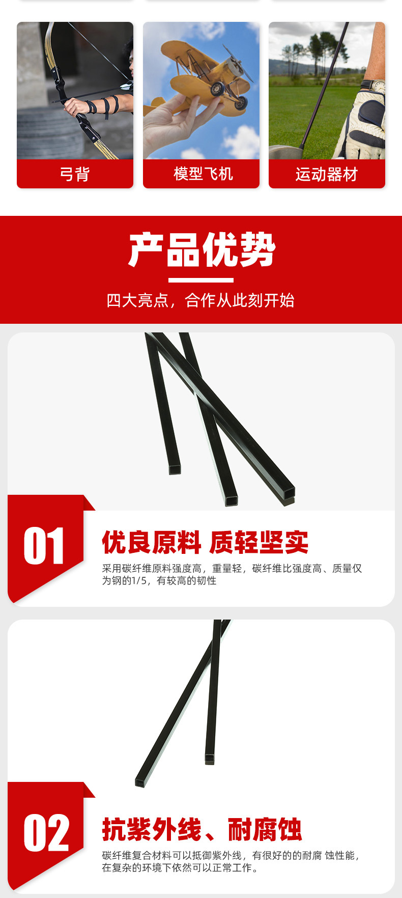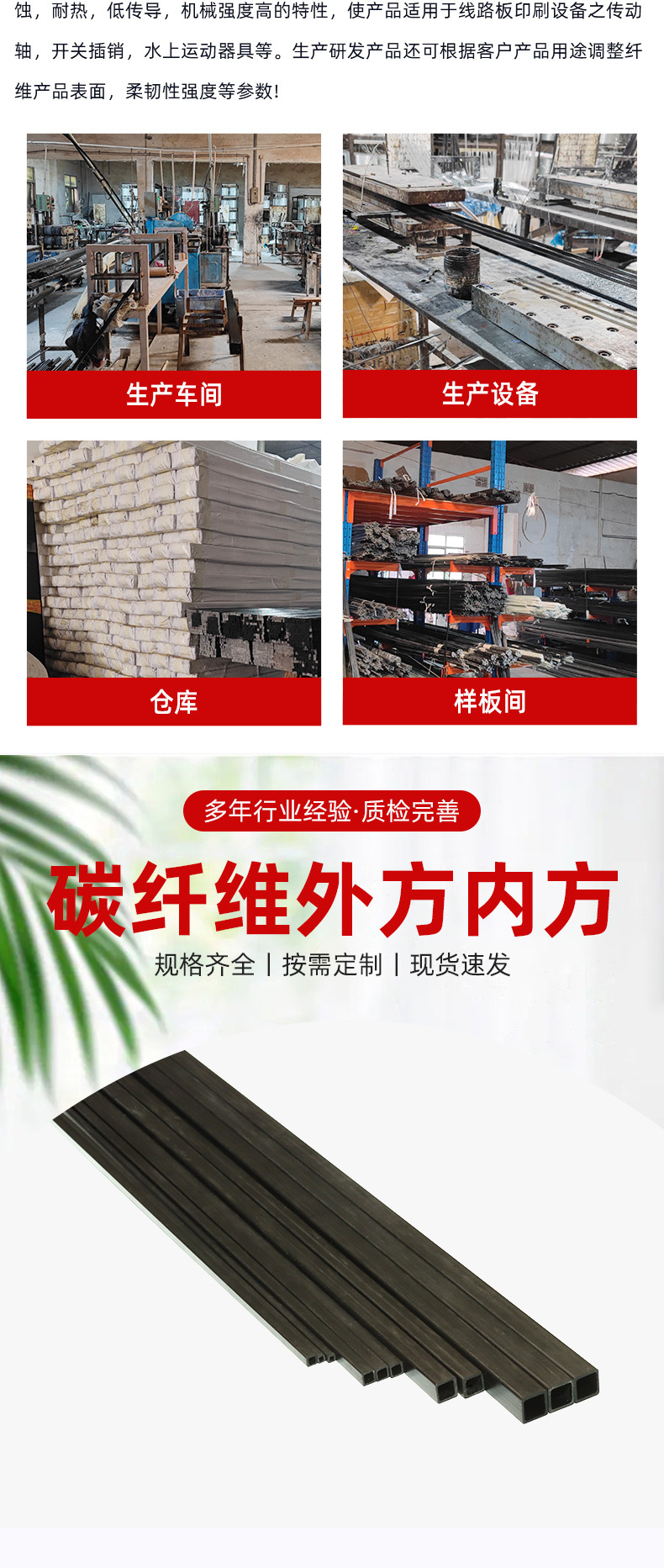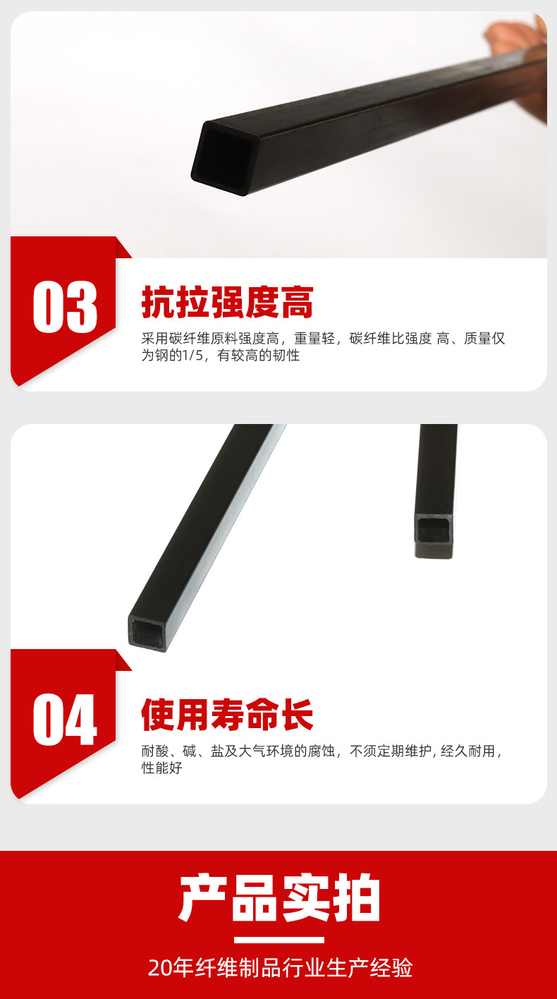 Квадратная труба из углеродного волокна, снаружи квадратная, внутри квадратная, термостойкая, износостойкая, пултрузионная, полая, для производства и обработки.