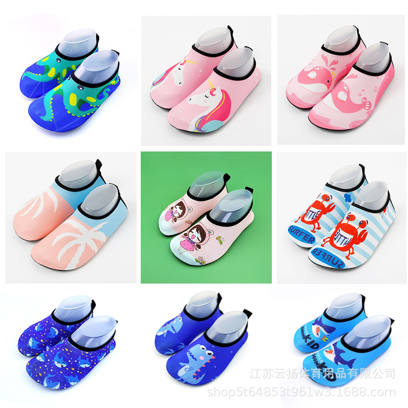 Детская пляжная обувь, быстросохнущая мягкая подошва, противоскользящая дышащая обувь для аквапарка, обувь для йоги с принтом, производители заводской обуви