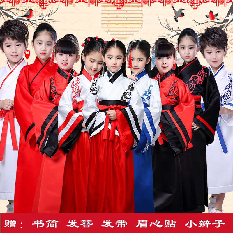 Детский древний костюм ханьфу для мальчиков и девочек, костюм для выступления госюэ, костюм для классического танцевального представления, книга гучжэн, детский костюм для чтения, студийный костюм