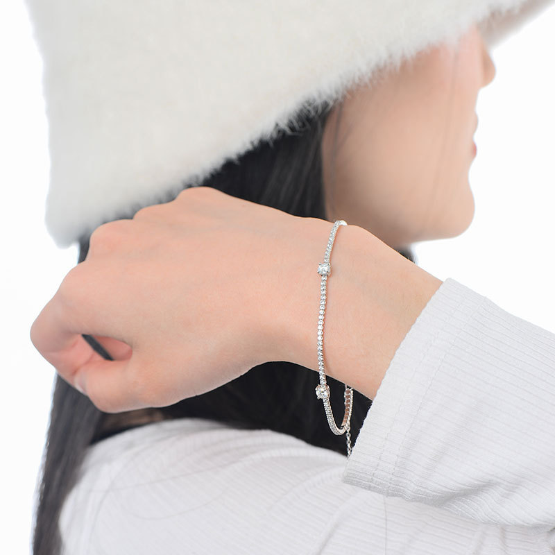 Трансграничный D цвет 50 центов браслет из муассанита Женская мода роскошь S925 Стерлинговое Серебро полностью бриллиантовые украшения для рук Super Flash в наличии оптом