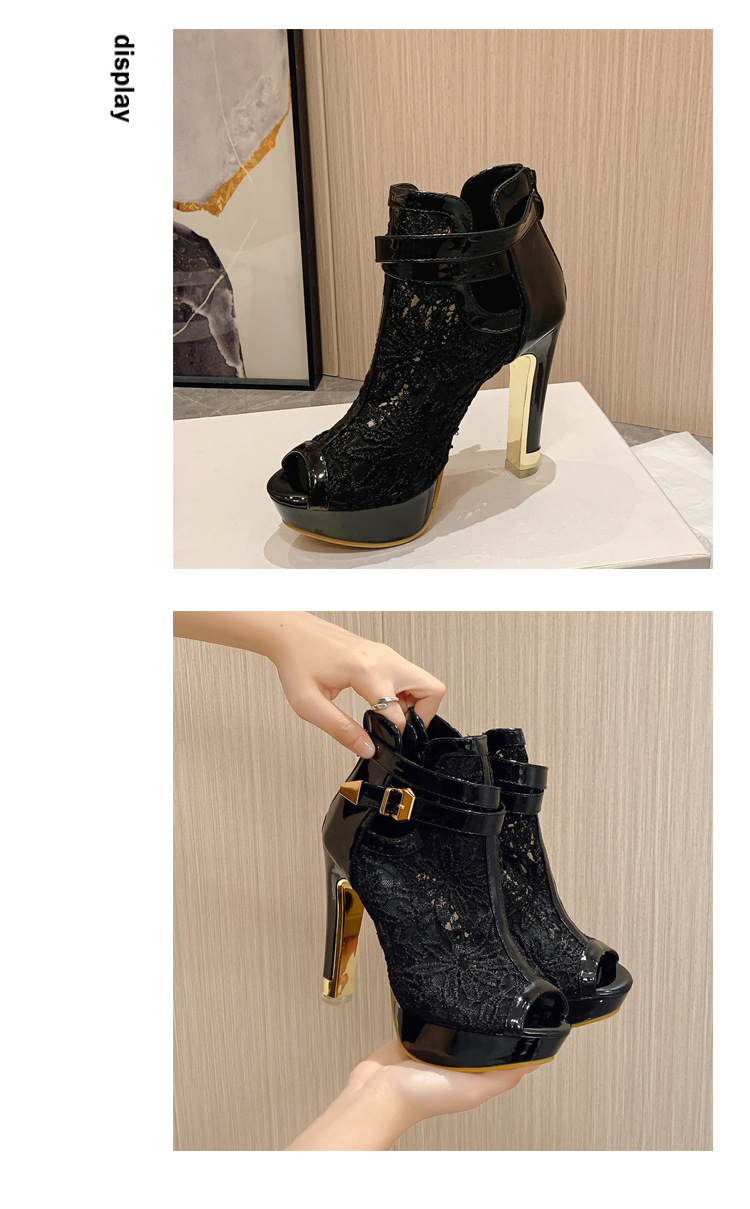 Трансграничная 2023 Европейская и американская внешняя торговля, Новые женские туфли, кружевная платформа, толстые сандалии на высоком каблуке с открытым носком hy828-19