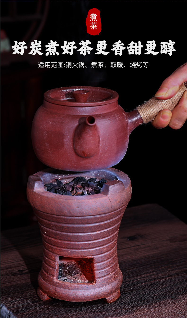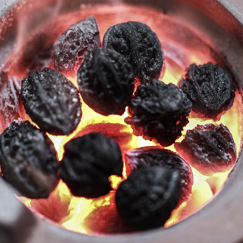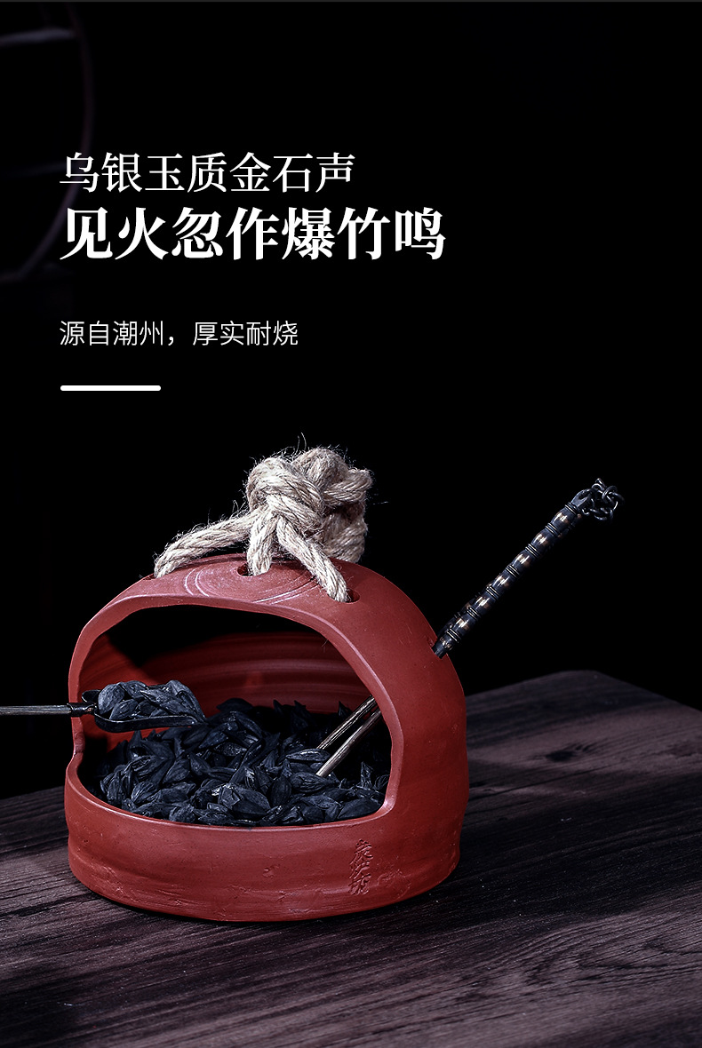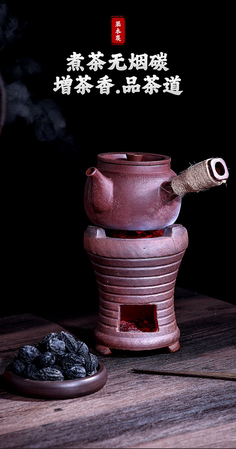Уголь для заваривания чая у печи: уголь из лонганов, уголь из грецких орехов, уголь из оливок, уголь из сердцевин фиников, уголь из хризантем, долговечный уголь, оливковый уголь.
