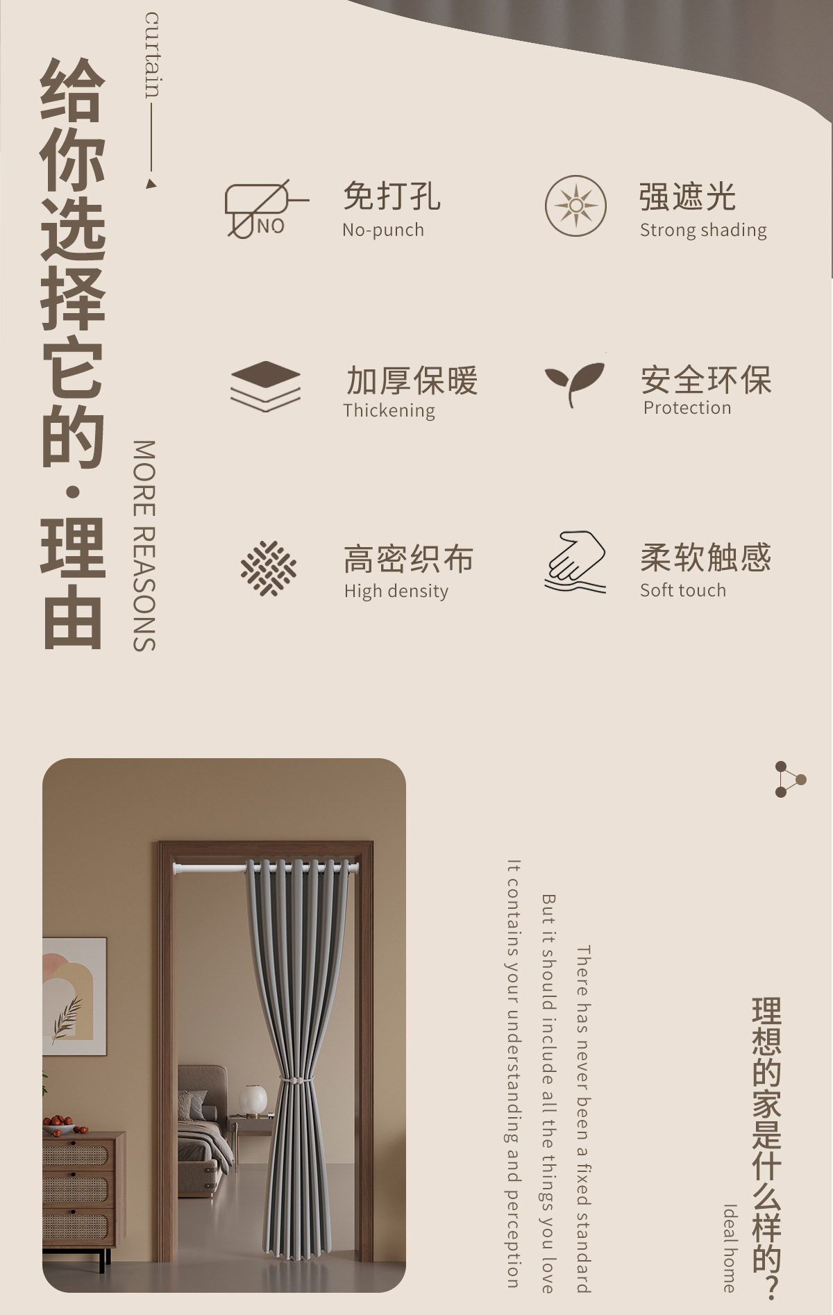 Утолщенная ветрозащитная и морозостойкая перегородка-штора, установка без сверления, подходит для спальни, кухни, примерочной и как подвесная штора.