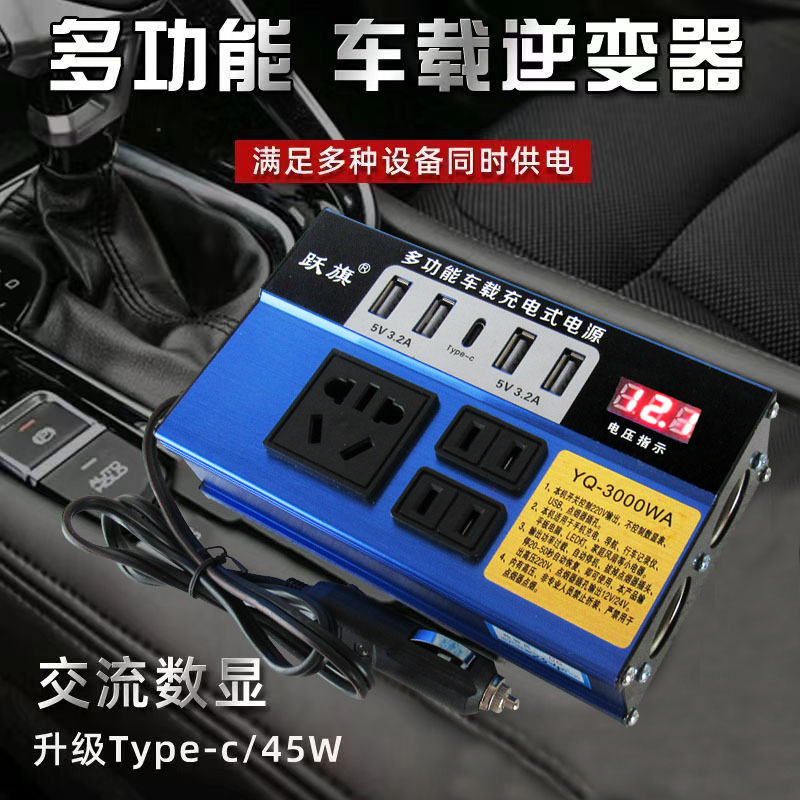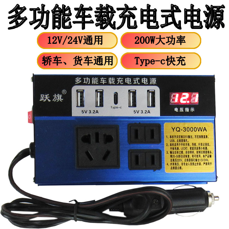 Многофункциональный автомобильный инвертор-преобразователь напряжения 12В/24В в 220В постоянного тока универсального типа для легковых и большегрузных автомобилей