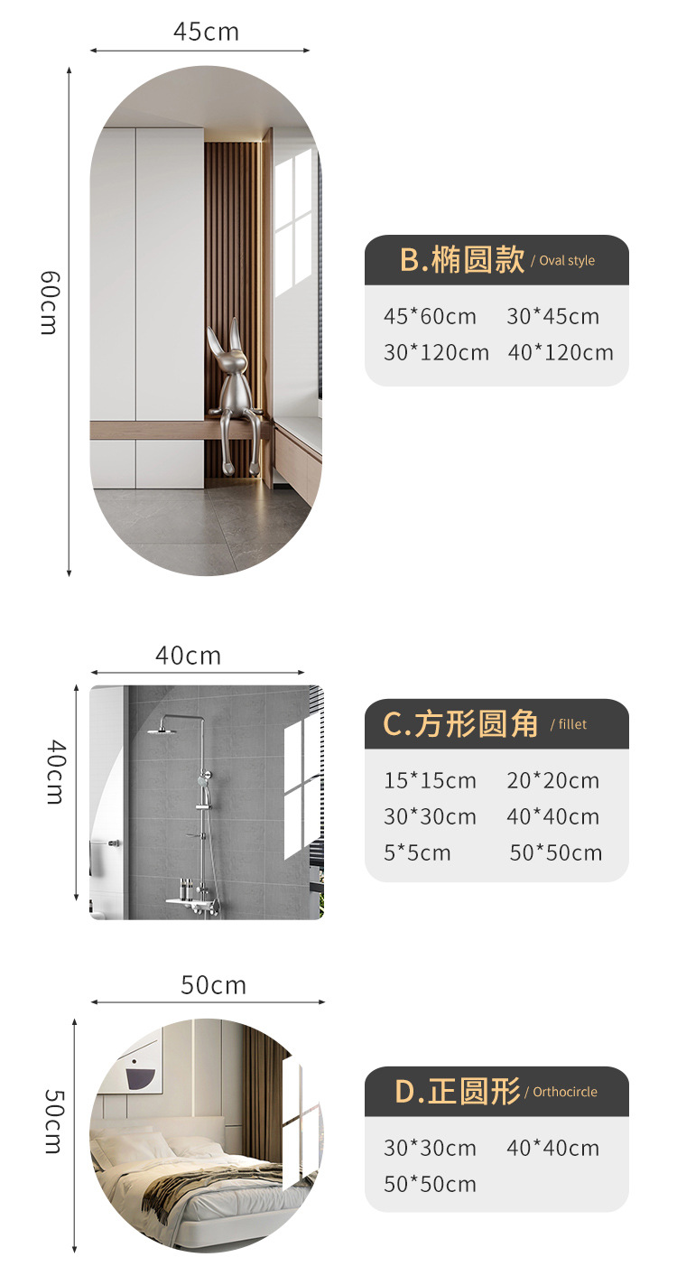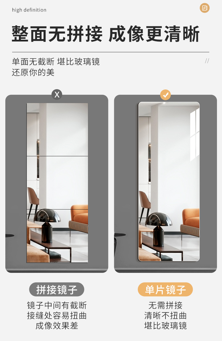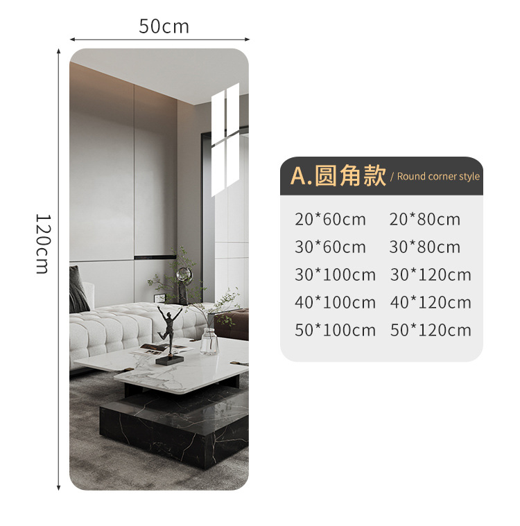 Акриловые самоклеящиеся зеркальные наклейки для арендного жилья, общежитий, зеркал в полный рост, для спальни, ванной комнаты, зеркал для макияжа, безрамочные.