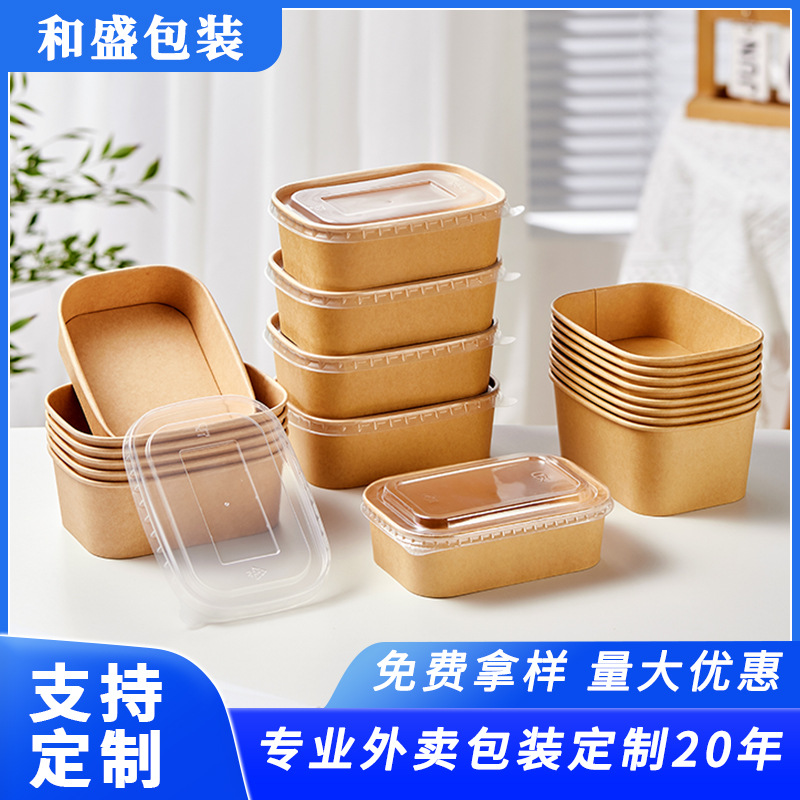 Одноразовая квадратная коробка, ланч-бокс из крафт-бумаги в китайском стиле, прямоугольная бумажная миска для еды, коробка для фастфуда, упаковка для еды на вынос, с возможностью индивидуализации