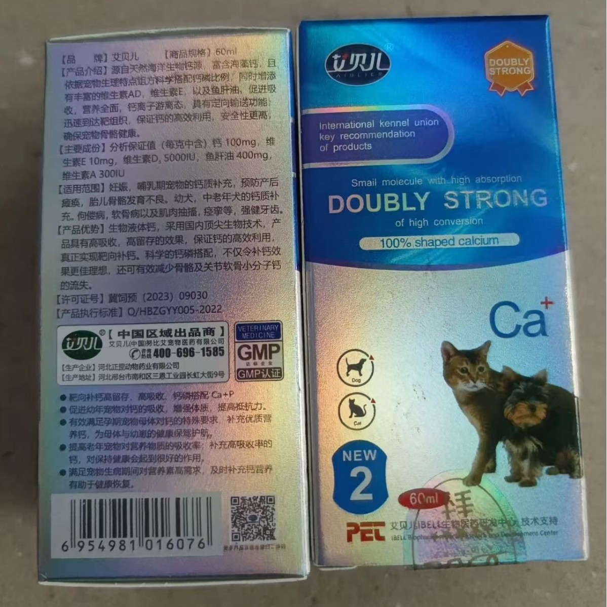 Жидкий кальций Aibelle 60 мл, двойная концентрация, жидкий биокальций для домашних животных, собак, щенков в период лактации, кошек, добавка для укрепления костей