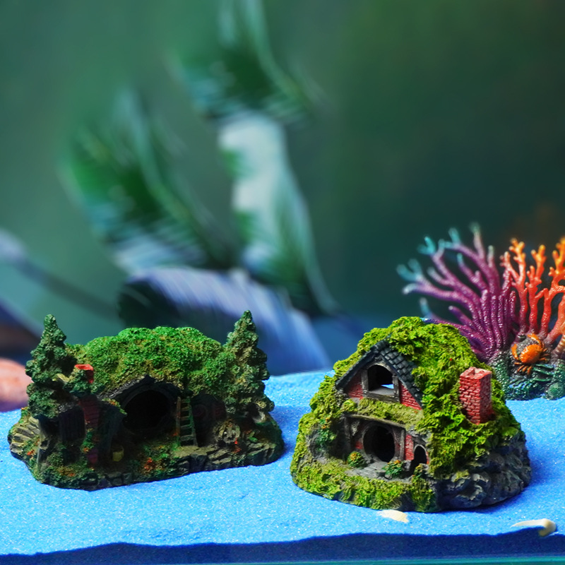 Декор для домашнего аквариума: миниатюрный домик-укрытие для рыбок из смолы, имитирующий соломенный домик, оптом