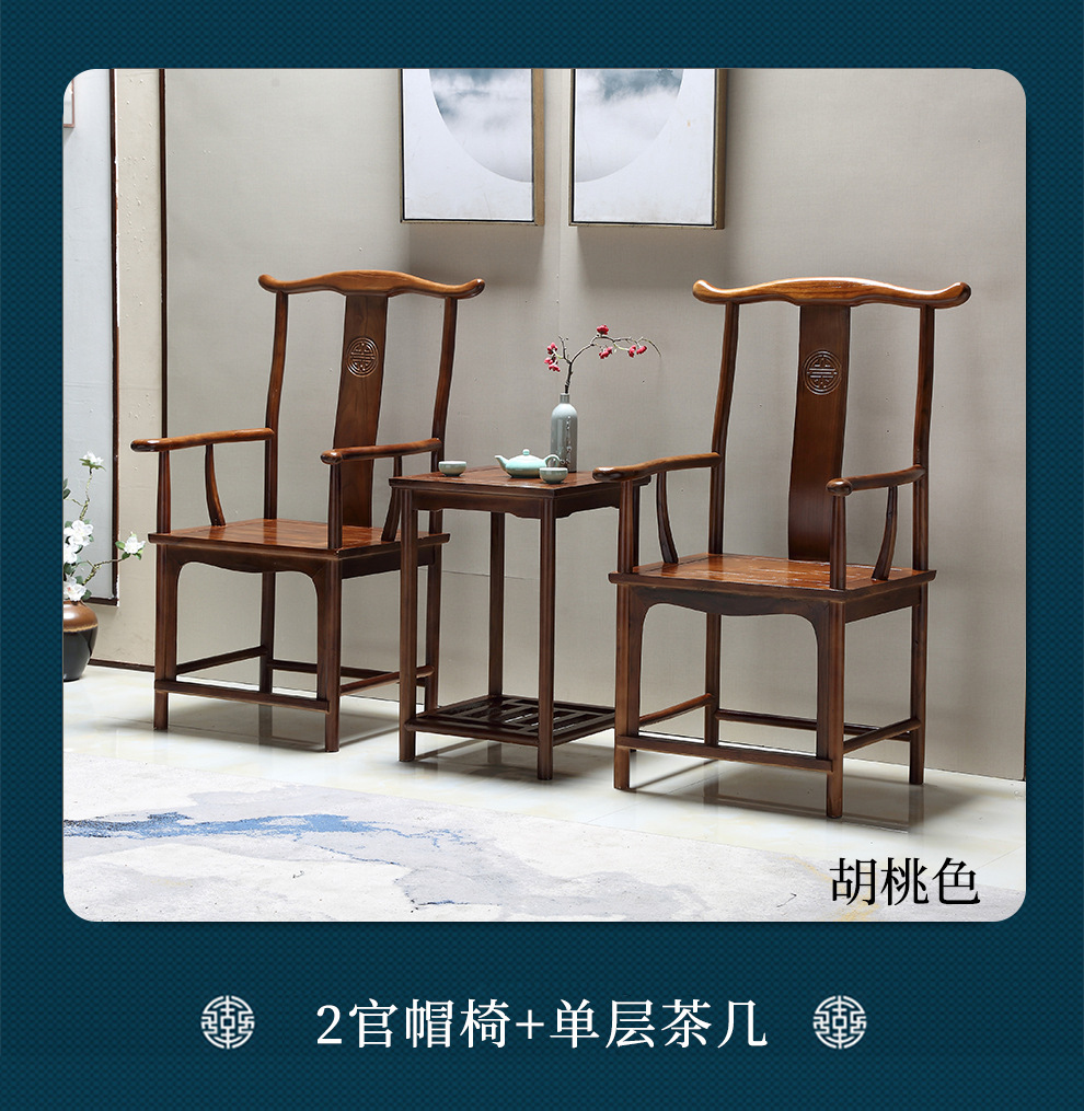 Новый китайский стиль стул из массива дерева Южный вяз деревянный стул Угловой стул круглый стул набор из трех частей гребень назад стул подлокотник официальный стул шляпа обеденный стул