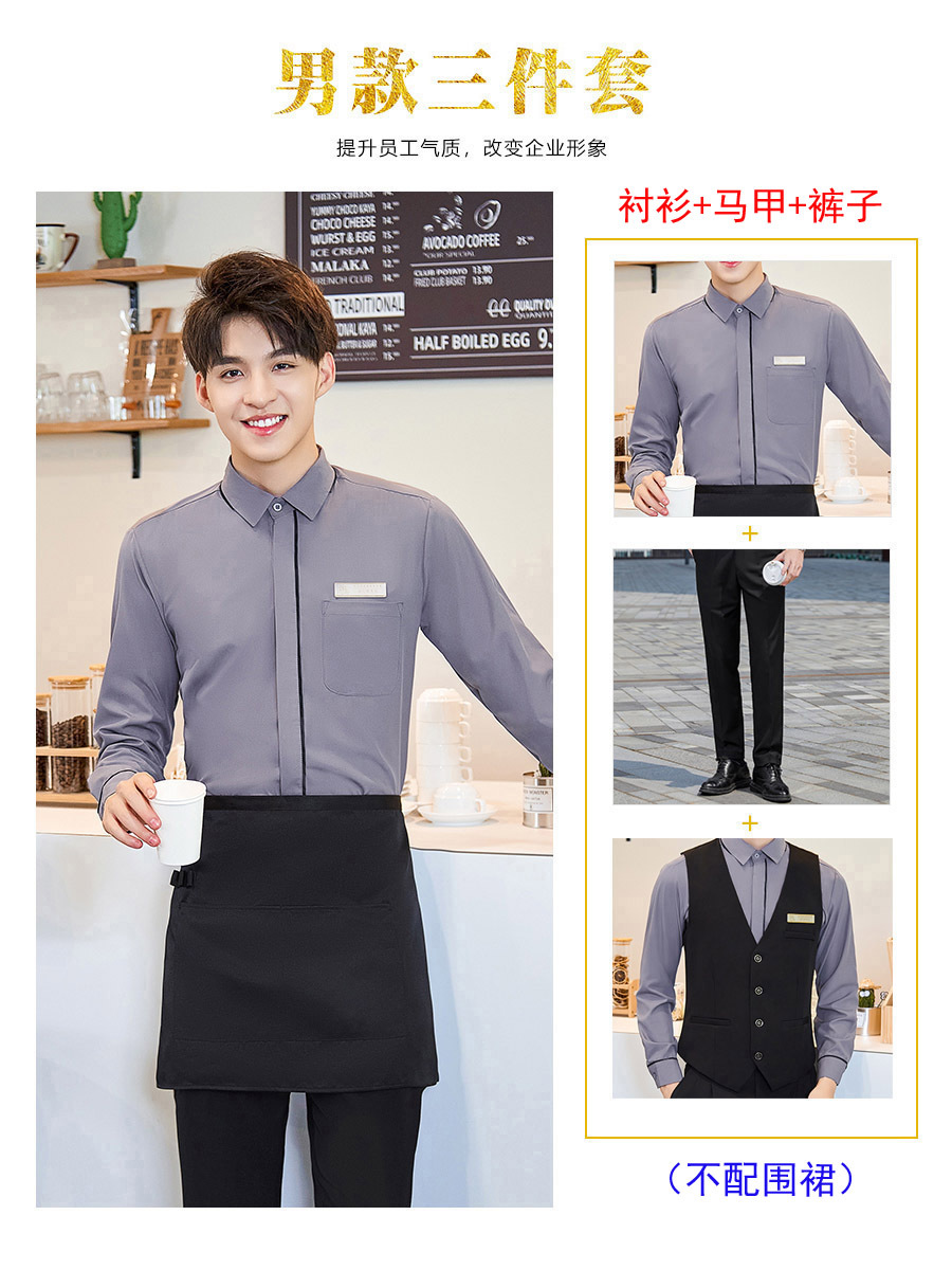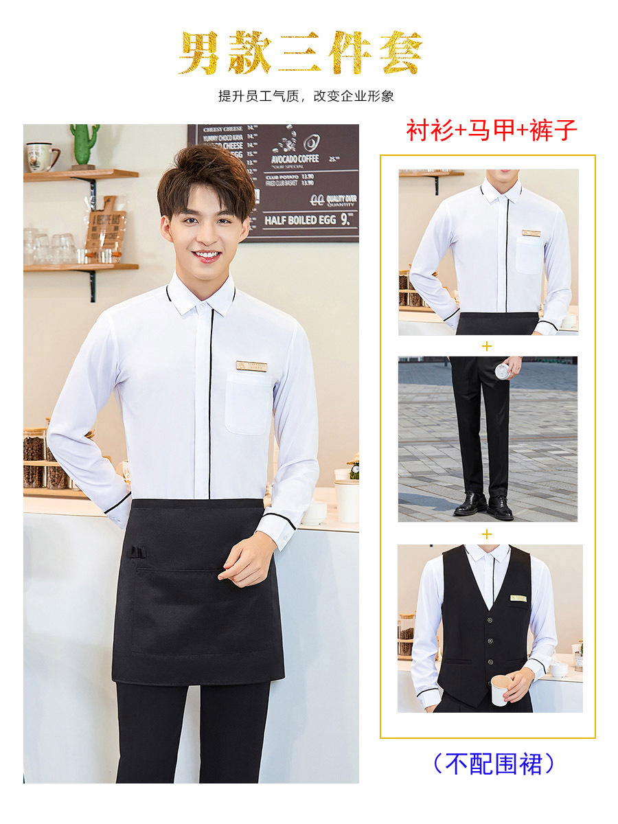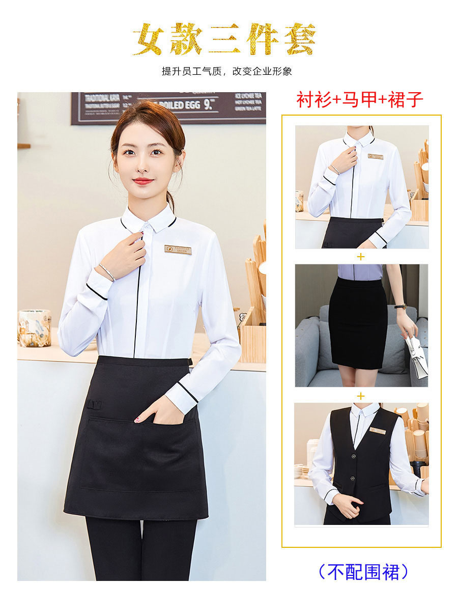 Белая рубашка с длинными рукавами 38 юаней; Женская длинная рубашка с длинными рукавами; Мужская белая рубашка с длинными рукавами 40 юаней; Мужские длинные рукава серая рубашка 40 юаней; Женский черный жилет 40 юаней; Мужской черный жилет 40 юаней; Женская черная юбка 25 юаней; Женские черные брюки 30 юаней; Мужские черные брюки 30 юаней; Женский длинный рукав белая рубашка черный юбка фартук 71 юаней; Женский длинный рукав серый рубашка черный юбка фартук 71 юаней; Женские длинные рукава белые рубашки черные брюки фартук 76 юаней; Женские длинные рукава серые рубашки черные брюки фартук 76 юаней; Мужские длинные рукава белые рубашки черные брюки фартук 78 юаней; Мужские длинные рукава серые рубашки черные брюки фартук 78 юаней; Женская длинная рубашка белая рубашка черная юбка жилет 103 юаней; Женская длинная рубашка серый рубашка черный жилет юбка 103 юаней; Женские длинные рукава белые рубашки черные жилеты брюки 108 юаней; Женский длинный рукав серый рубашка черный жилет брюки 108 юаней; Мужские длинные рукава белые рубашки черные жилеты брюки 110 юаней; Мужские длинные рукава серые рубашки черные жилеты брюки 110 юаней
