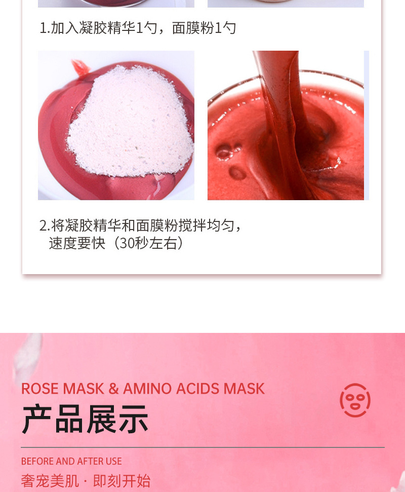 Гелевая маска для осветления розы + маска с аминокислотами + чаша; Маска геля подмолаживания розы + маска аминокислоты; Миска посуда
