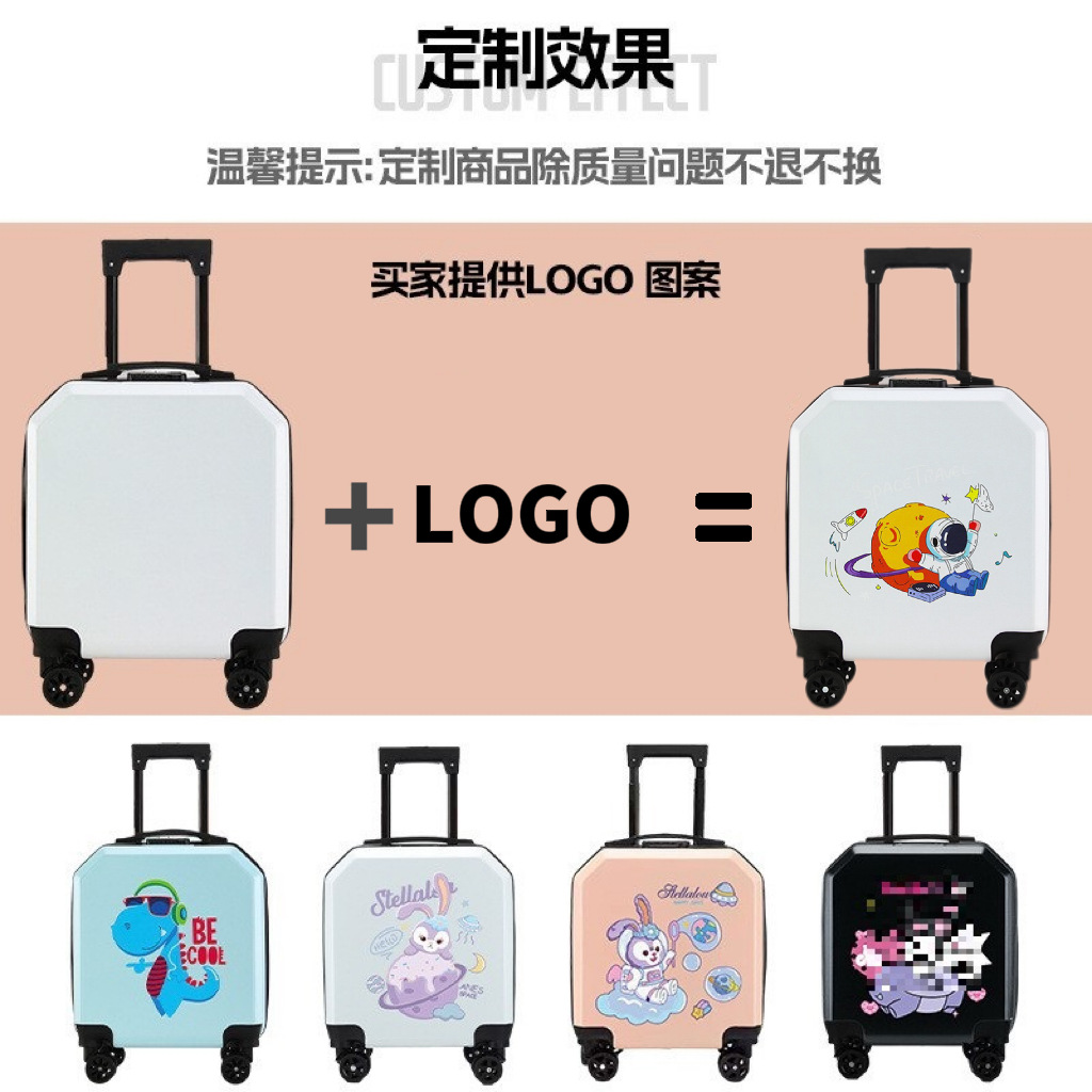 Детский чемодан на универсальных колесах, чемодан-тележка с мультяшным рисунком, студенческий чемодан с кодовым замком, оптом с нанесением логотипа, дорожный чемодан для ручной клади 18inch