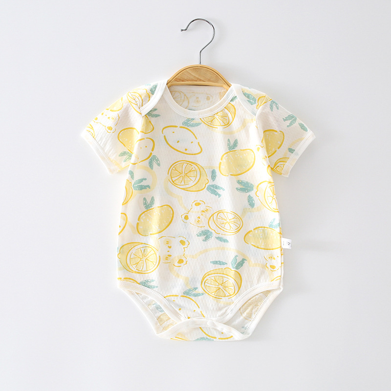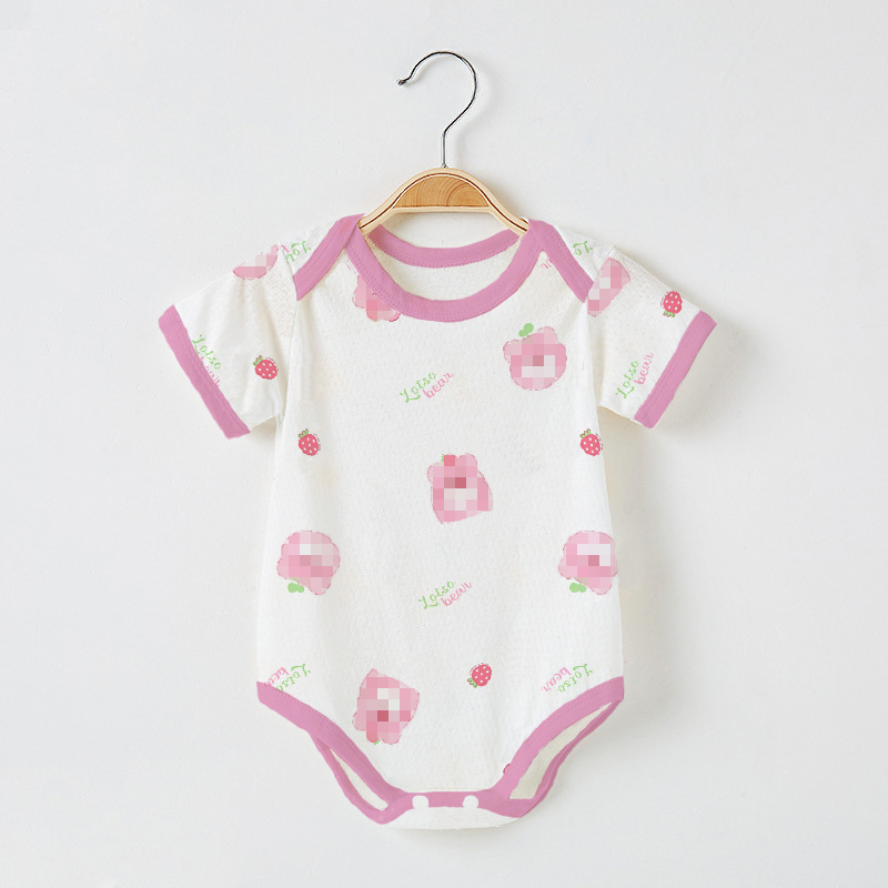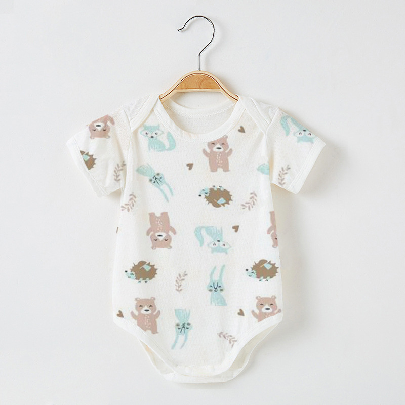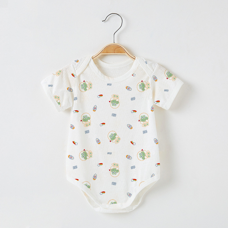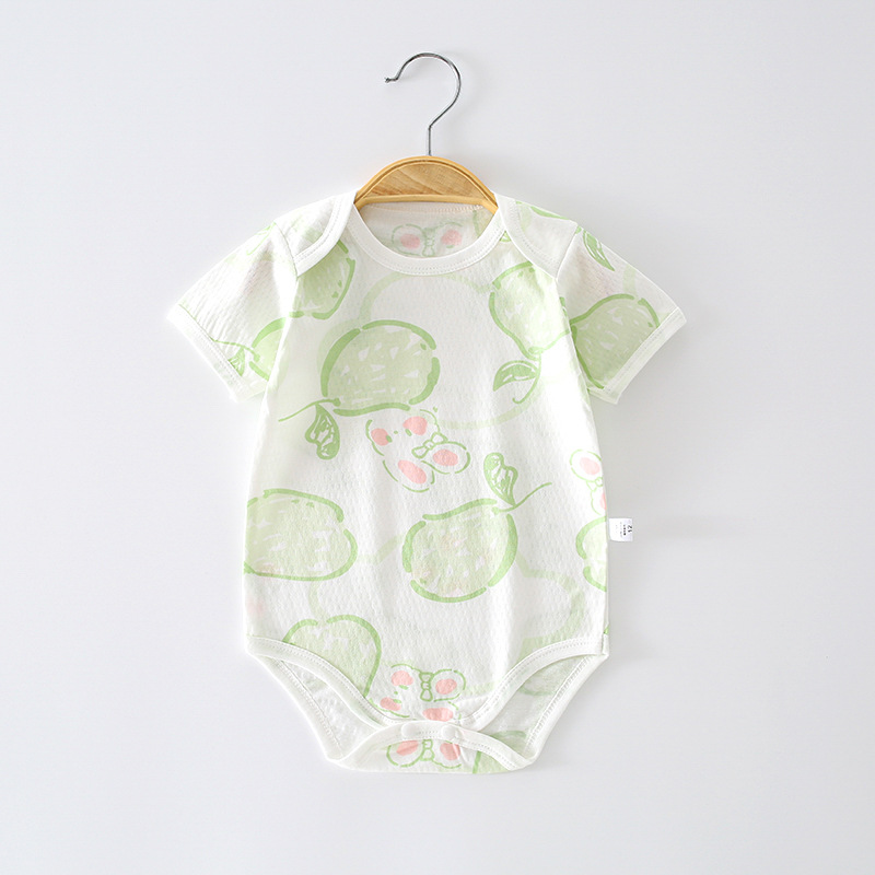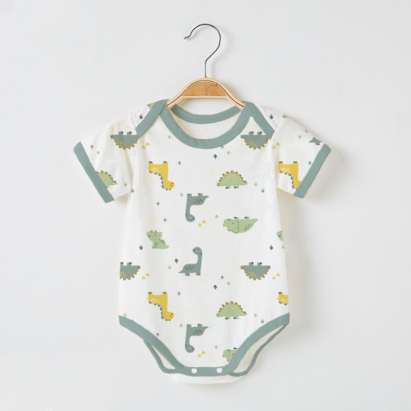 Детский комбинезон с короткими рукавами из чистого хлопка, тонкий, для мальчиков и девочек, 0-12 месяцев, одежда для ползания, одежда для новорожденных, цельный комбинезон