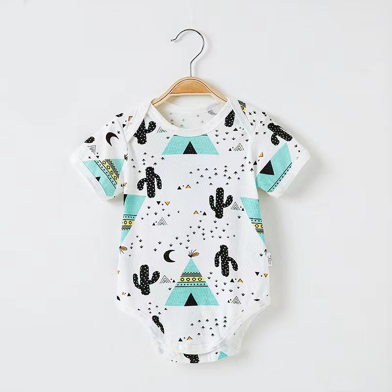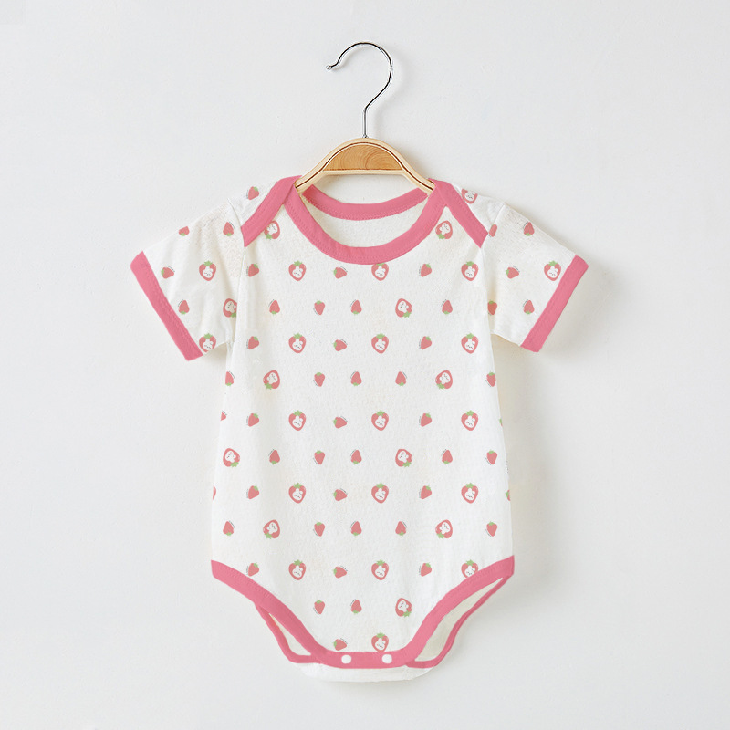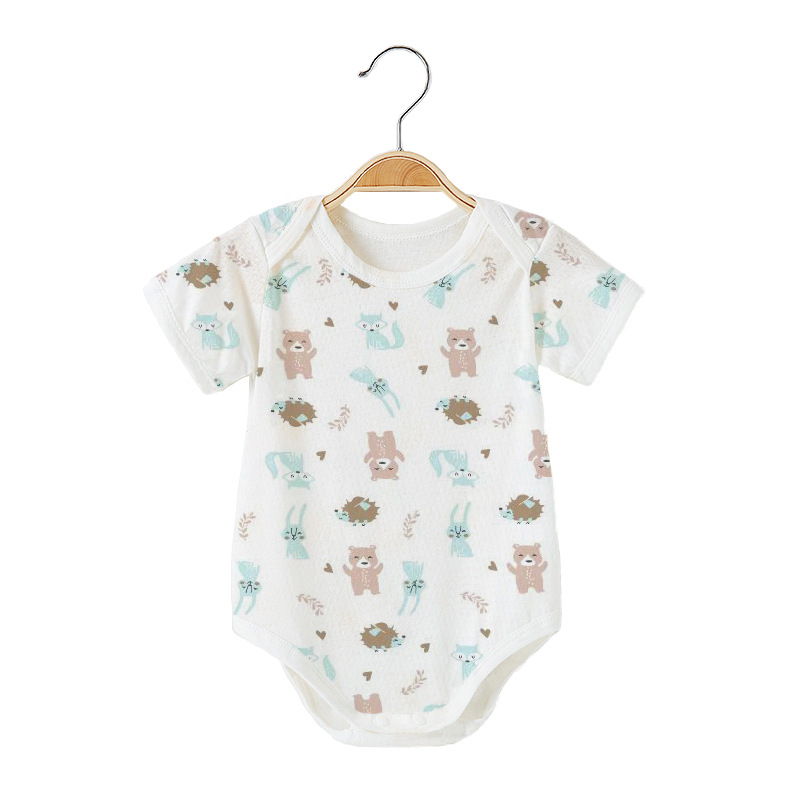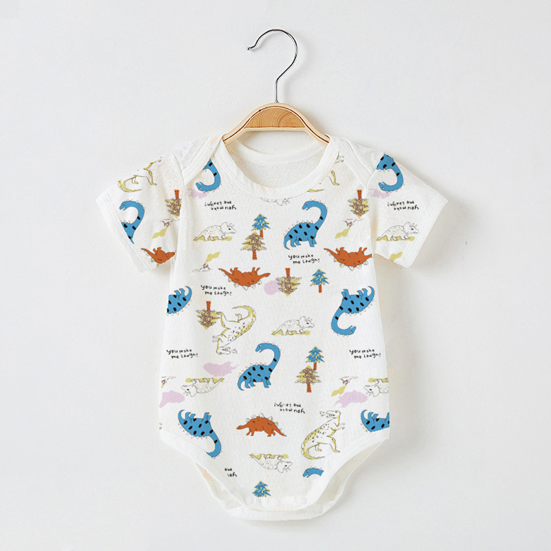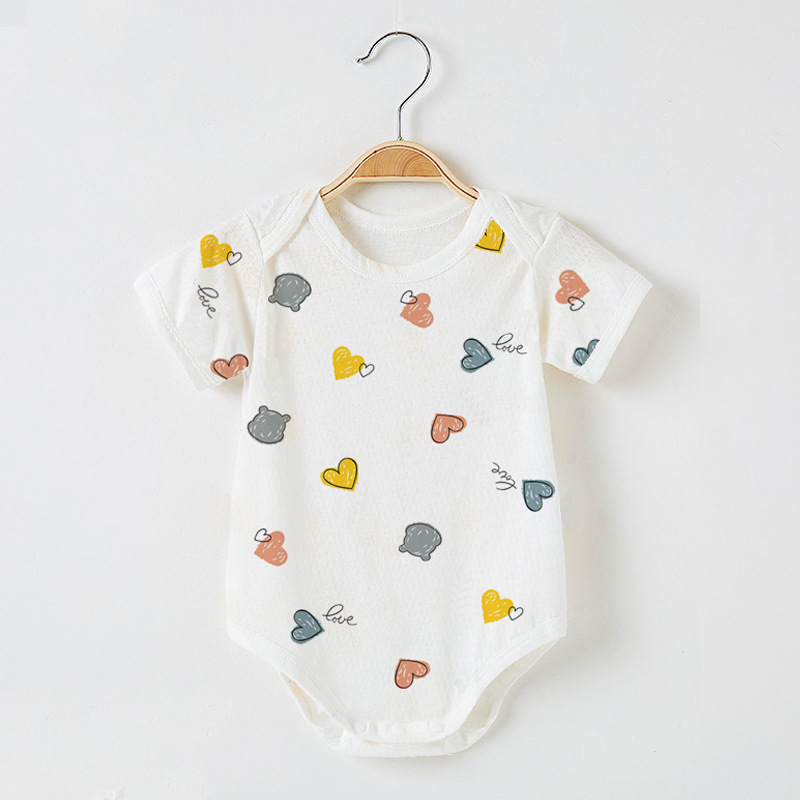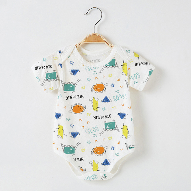 Детский комбинезон с короткими рукавами из чистого хлопка, тонкий, для мальчиков и девочек, 0-12 месяцев, одежда для ползания, одежда для новорожденных, цельный комбинезон