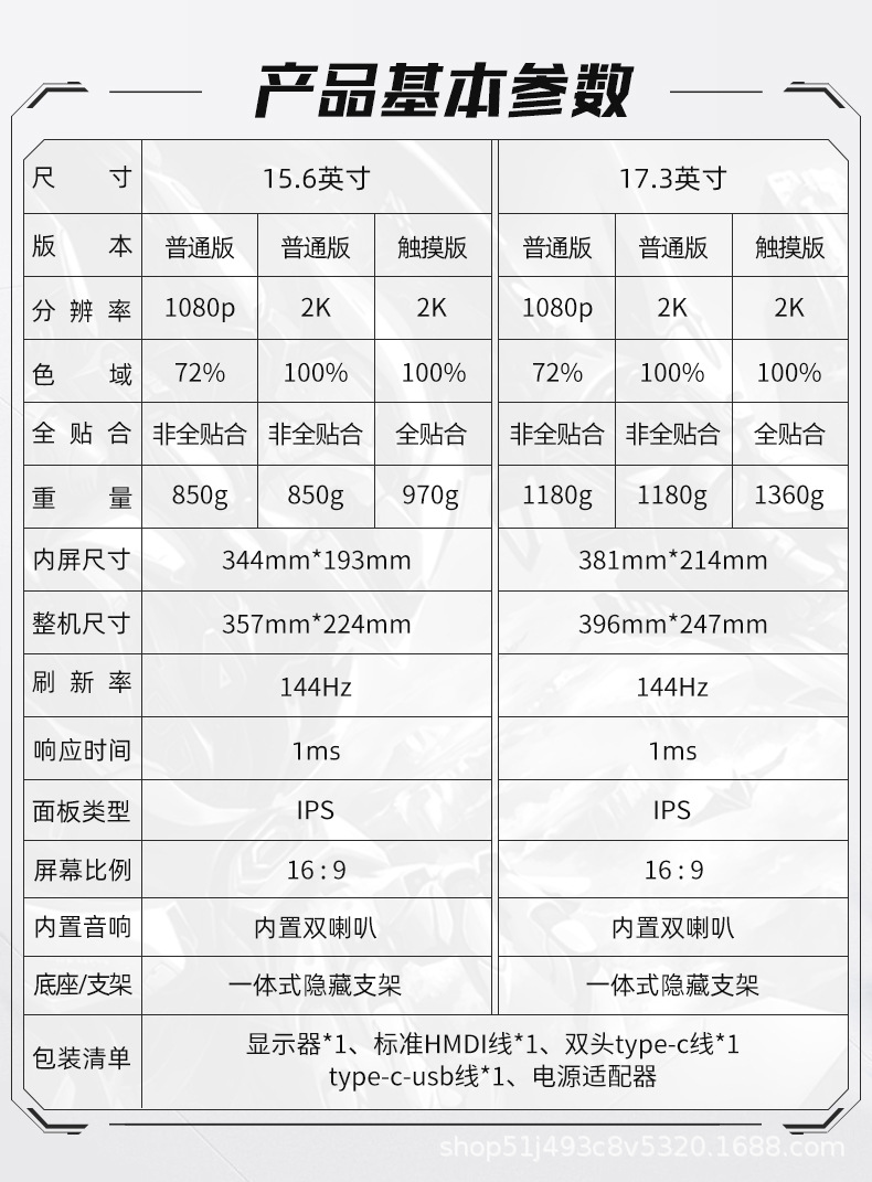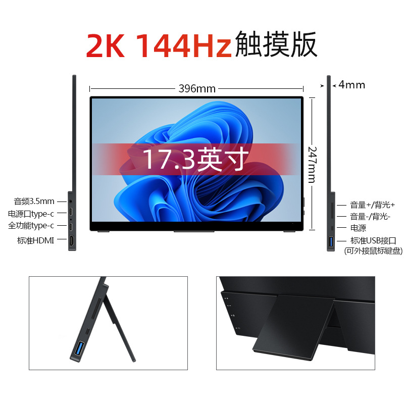 | DIY定制 | 便携式显示器 | 屏幕 | HDR | 监视器 | 液晶 | LG | TYPE-C线接口 | 刷新率244Hz | 17.3英寸 |