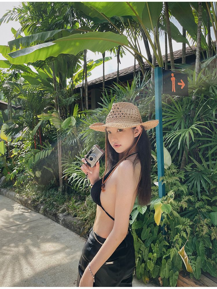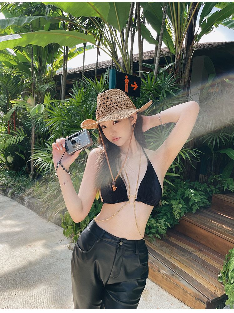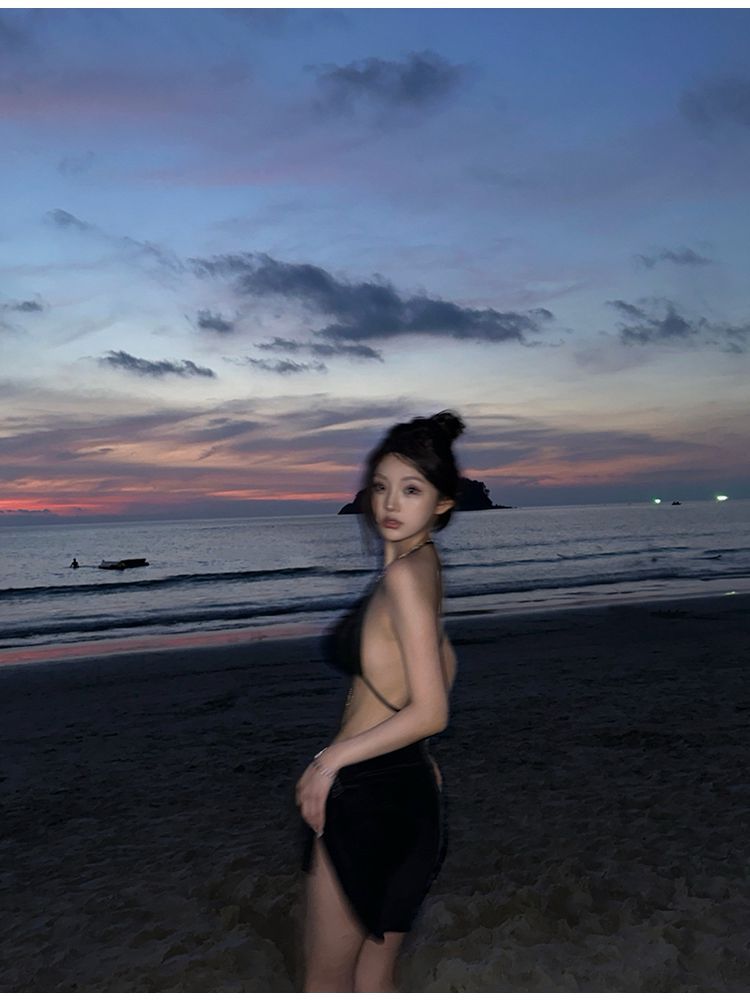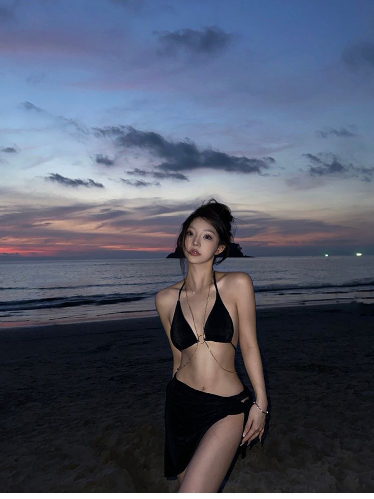 Xinqi интернет-знаменитости в одном стиле бикини черная цепочка чистое желание сексуальные европейские и американские ins сплит крышка юбка купальник Женская горячая девушка
