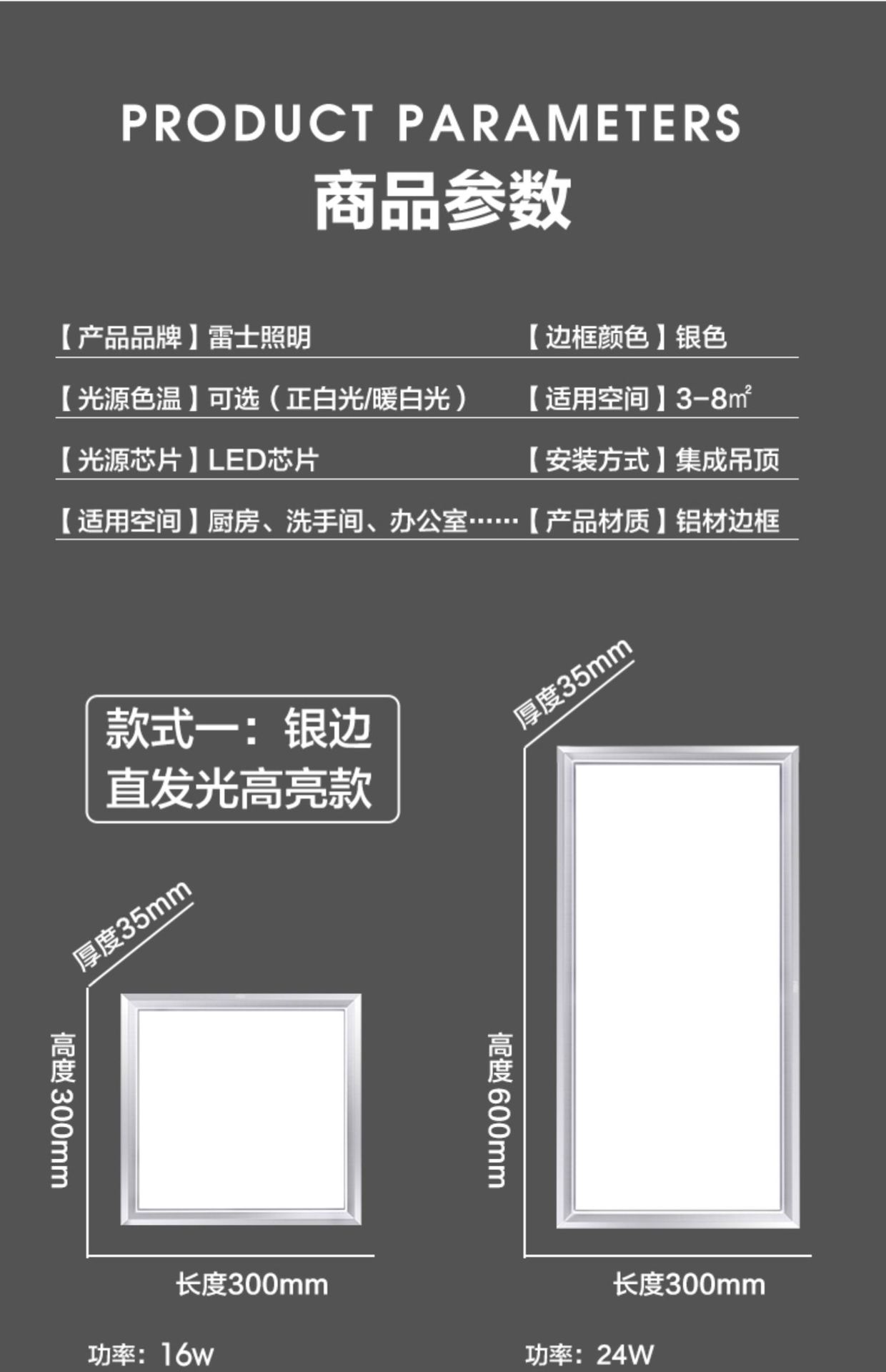 [Специальное предложение] 36 Вт 600*600 (встроенная модель); [Горячая модель] 48 Вт 600*600 (встроенная модель); Специальное предложение для кухни и ванной комнаты 18W Gold Selection [300*300]; 24W Золотая коллекция для кухни и ванной [300*300]; 24W Золотой Селекшн для кухни и ванной [300*600]; 36W Золотой Селекция для Кухни и Ванной [300*600]; 18 Вт серебряный край 30*30; 18 Вт белый край 30*30; 24 Вт серебряный край 30*60; 24Вт белый край 30*60; Модернизированная алюминиевая модель, белая кромка, 36 Вт, белый свет 300*600; [Модернизированная большая мощность — жемчужно-белый] 300*600, 48 Вт; [Модернизированная большая мощность — матовое серебро] 300*600, 48 Вт; 48 Вт 595*595 (несборный потолок, защелкивающийся пакет приобретается отдельно); 36 Вт 598*598 (несборный потолок, защелкивающийся пакет приобретается отдельно); [Улучшение защиты IP44] Без границ|Жемчужно-белый 24 Вт|30X60см; [Освещение полного спектра] Жемчужно-белый, 36 Вт|Алюминиевая модель|30X60см; [Улучшение защиты IP44] Без границ|Жемчужно-белый 36 Вт|30X60см|; [Освещение полного спектра] Улучшение защиты IP44|Без границ|Стерилизация и удаление формальдегида|24 Вт|30X60см|; [Освещение полного спектра] Улучшение защиты IP44|Без границ|Стерилизация и удаление формальдегида|24 Вт|30X30см; [Освещение полного спектра] Улучшение защиты IP44|Без границ|Стерилизация и удаление формальдегида|36 Вт|30X60см; [Обновленная модель с высокой мощностью — матовое серебро] 300*600, 48 Вт; Алюминиевый профиль, матовая серебристая отделка, 24 Вт, холодный белый свет, 300*600 мм.; 36 Вт 300*1200 (встроенный потолок); 36 Вт, 298×1198 (несборная потолочная защелка приобретается отдельно); 40 Вт 300×1200 (встроенный потолок)