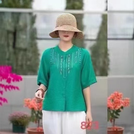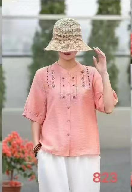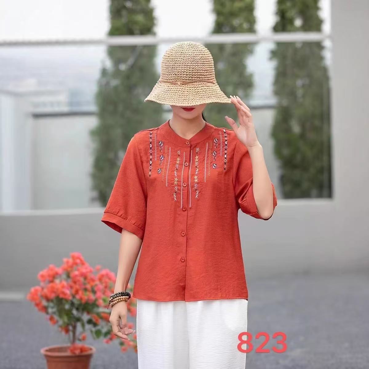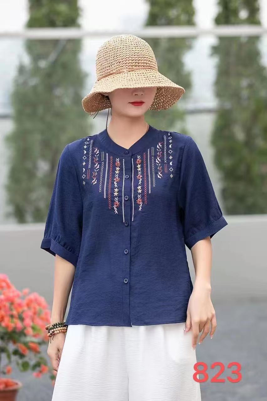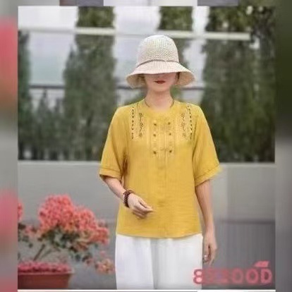 Женские свободные топы в этническом стиле, вышитые, оптом, индивидуальный пошив, легкие, универсальные, ретро, с коротким рукавом, в китайском стиле