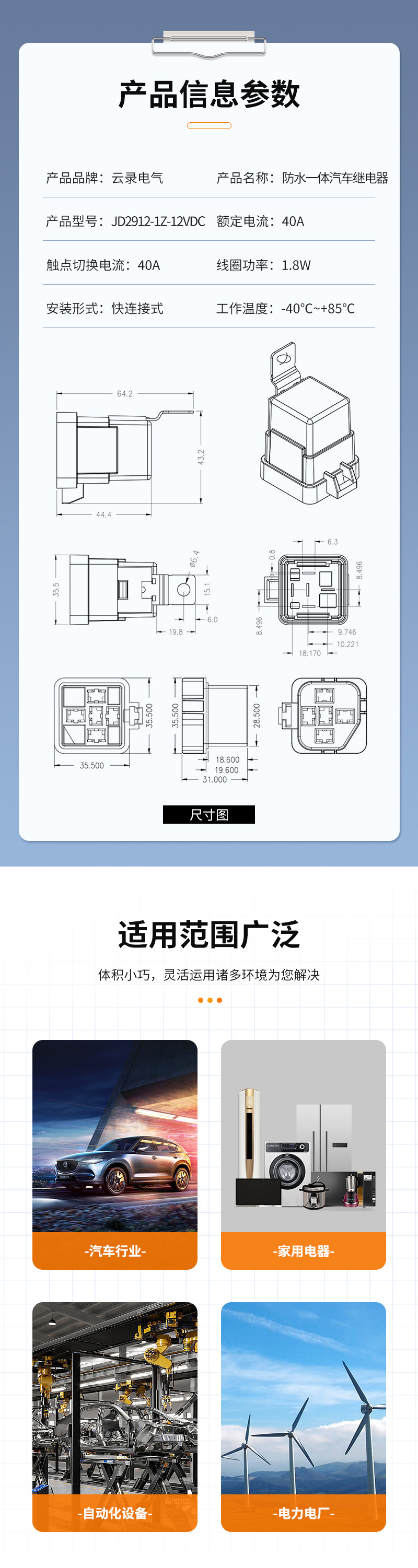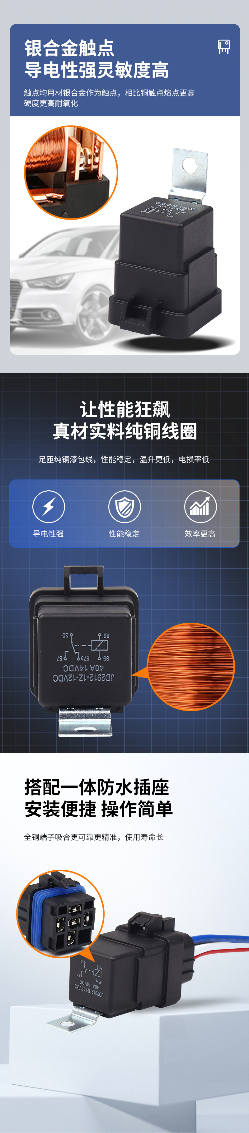 Автомобильное реле JD2912-1Z-12vDC, пятиконтактное, пластиковый корпус, 40А, пятиконтактное, интегрированное, водонепроницаемое, для транспортных средств