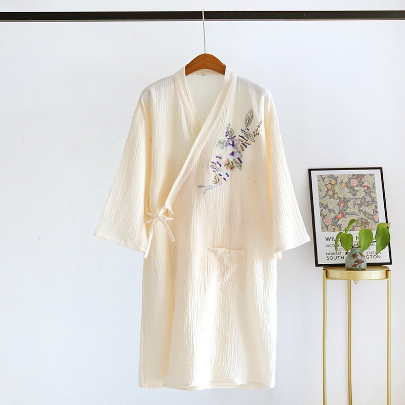 Женская пижама в японском стиле, хлопковая марлевая ночная рубашка, летняя тонкая ночная рубашка, халат с вышивкой в китайском стиле ханьфу, Паровая одежда от пота