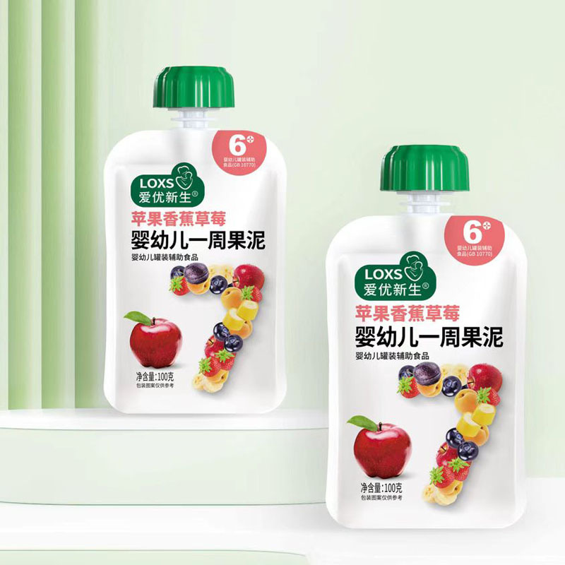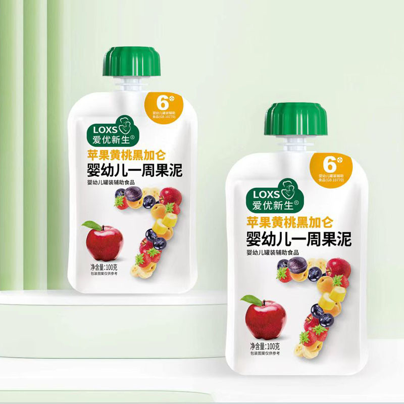 Aiyou Xinsheng Неделя Фруктовое пюре Сок Пюре Сосущий Фруктовое пюре 100 г Пакет Яблоко Банан Клубника Черника Чернослив