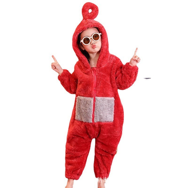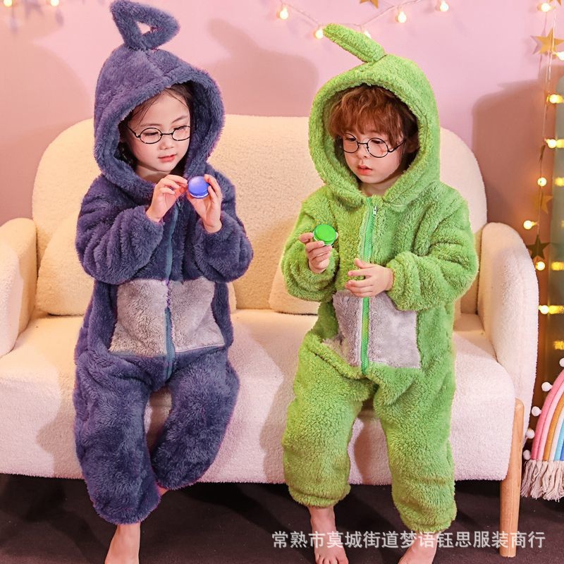 Оптовая продажа новых плюшевых детских пижам-комбинезонов с героями мультфильмов Телепузиков, утепленных и теплых.