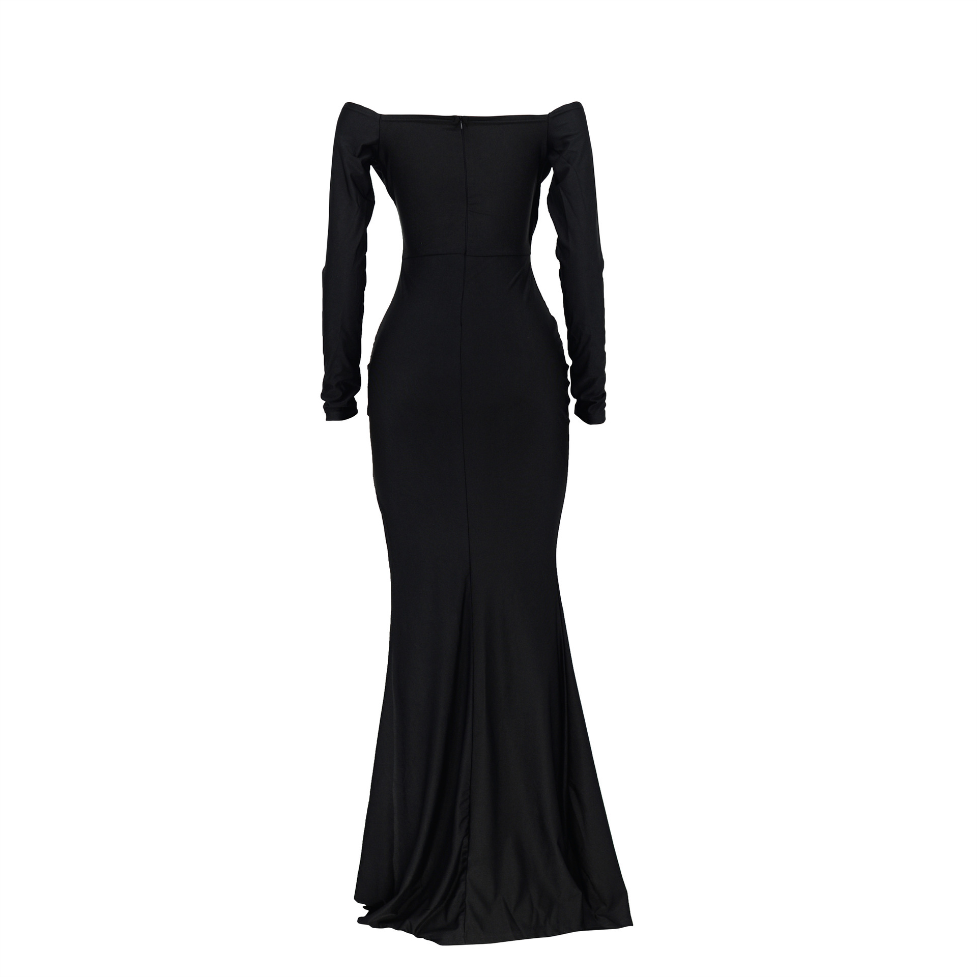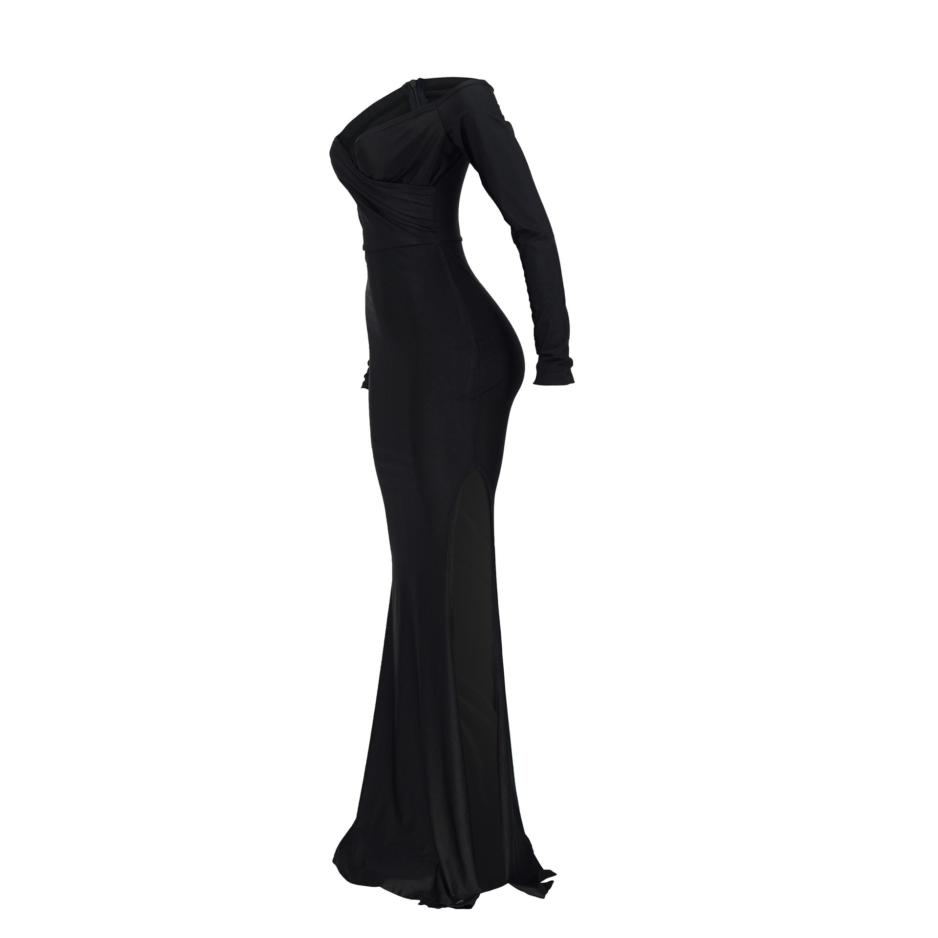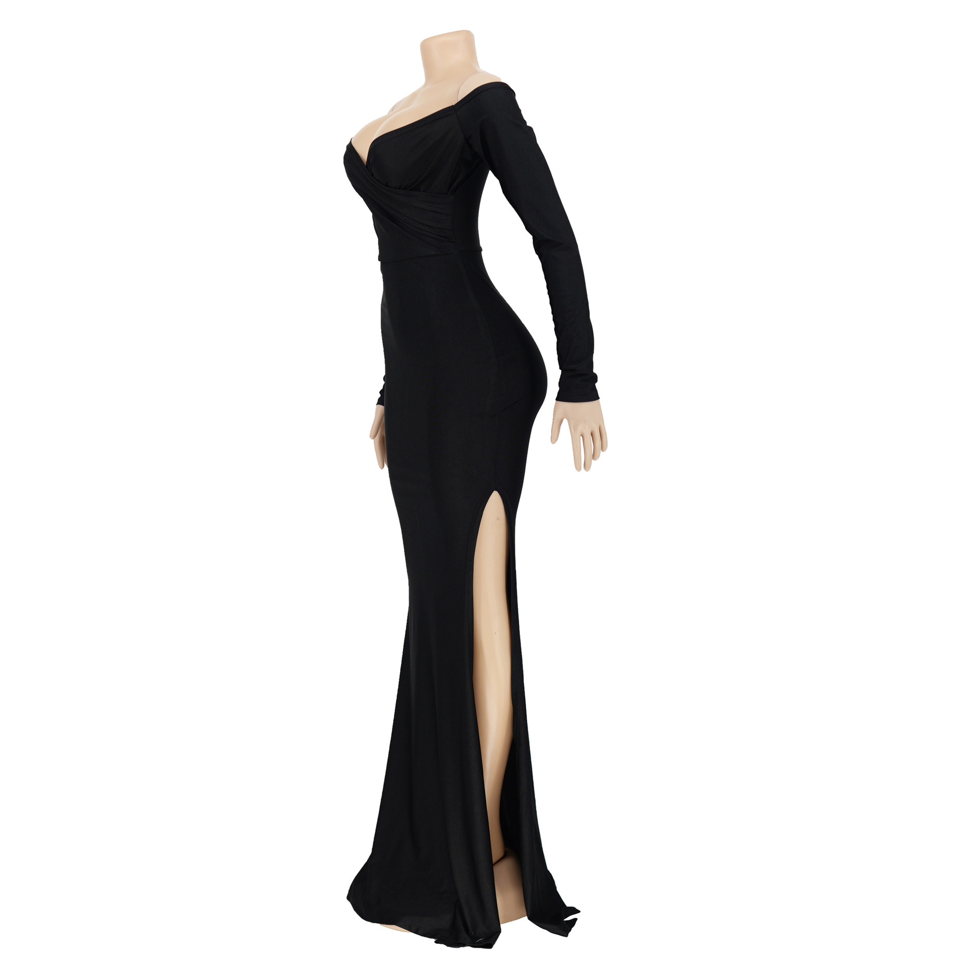 Настоящее съемное трансграничное Европейское и американское женское сексуальное платье для ночного клуба, платье с V-образным вырезом, однотонное платье с большим разрезом, осенне-зимнее платье с длинным рукавом