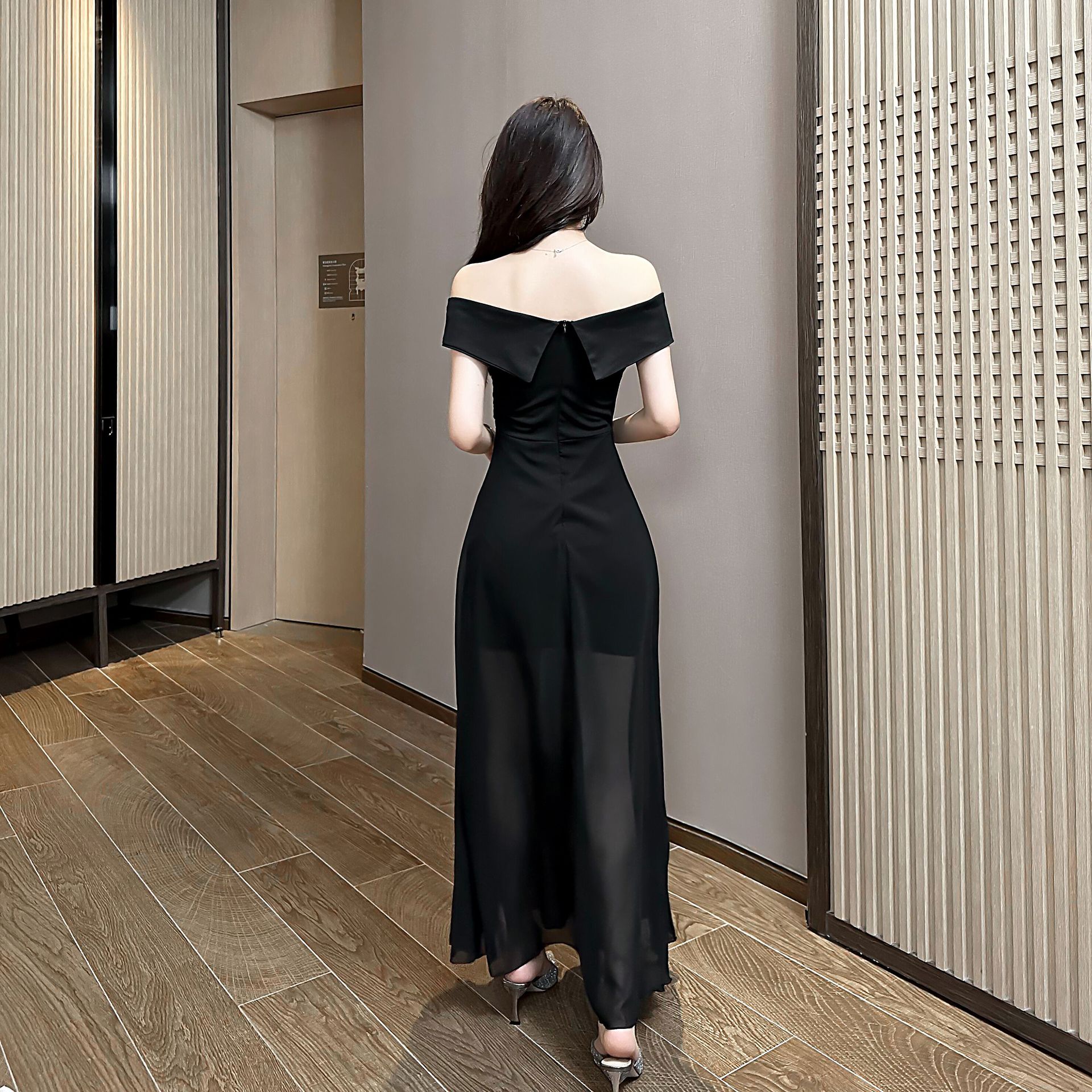 Белое платье женское 2023 летняя супер фея темпераментная талия тонкая ласточкин хвост длинное платье сплошной цвет платья с открытыми плечами