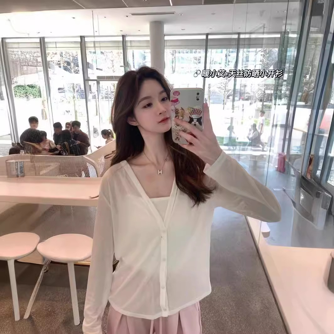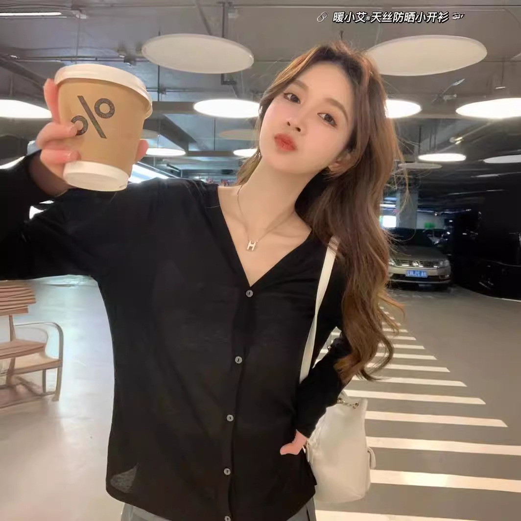 Новое поступление в Японии, кардиган Tencel, женская летняя рубашка накидка с длинными рукавами и тонким ремешком, блузка с V-образным вырезом, Женский Топ