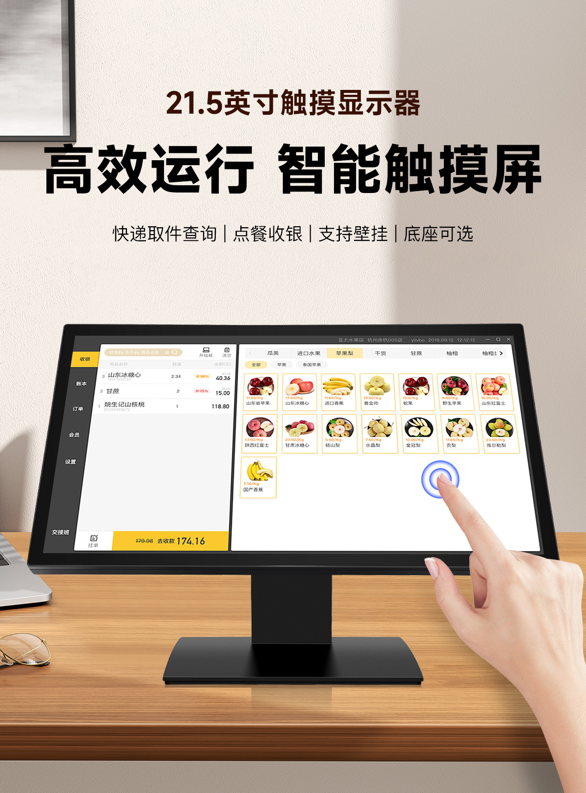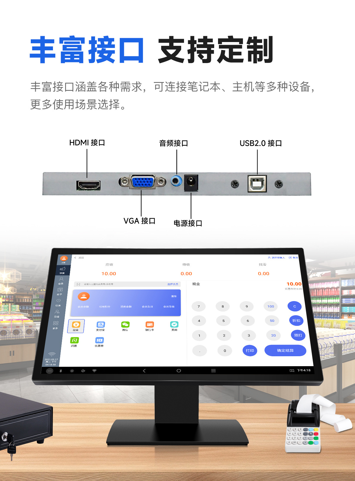 15/17/19/21.5/ 23.8inch чистый плоский емкостный сенсорный дисплей кассира, розничный дисплей для супермаркета