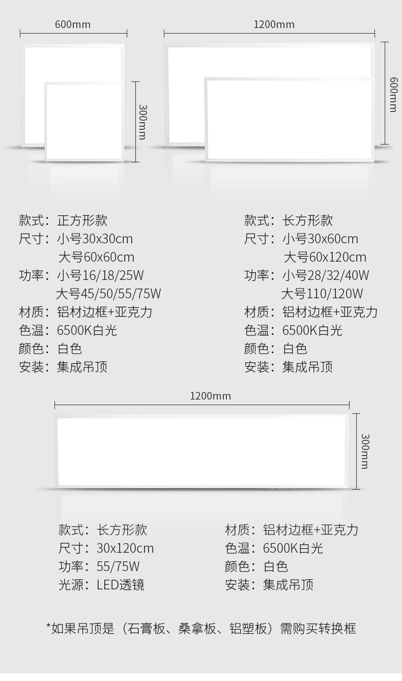 30x30 квадратная лампа 16 Вт белый свет [модернизированная ультратонкая белая рамка]; 30x30 квадратная лампа 18 Вт белый свет [модернизированная ультратонкая белая рамка]; 30x30 квадратная лампа 20 Вт белый свет [модернизированная ультратонкая белая рамка]; 30x30 квадратная лампа 22 Вт белый свет [обновленная ультратонкая белая коробка]; Квадратный свет 30x30 25 Вт Белый [обновление ультратонкой белой коробки]; 30x30 квадратный Свет 28 Вт белый свет [обновление ультратонкой белой рамки]; 30x30 квадратный Свет 30 Вт белый свет [обновление ультра-тонкая белая коробка]; 30x30 квадратная лампа 28 Вт белый свет [утолщение и подсветка инженерного качества]; 30x30 квадратная лампа 30 Вт белый свет [утолщение и подсветка инженерного качества]; Длинная лампа 30x60 28 Вт белый свет [модернизированная ультратонкая белая рамка]; 30x60 длинная лампа 35 Вт белый свет [модернизированная ультратонкая белая рамка]; 30x60 длинный свет 45 Вт Белый свет [обновление ультратонкой белой коробки]; 30x60 длинная лампа 55 Вт белый свет [модернизированная ультратонкая белая рамка]; 30x60 длинная лампа 65 Вт белый свет [модернизированная ультратонкая белая рамка]; 30x60 длинная лампа 55 Вт белый свет [утолщение и выделение инженерного качества]; 30x60 длинная лампа 65 Вт белый свет [утолщение и подсветка инженерного качества]; 60x60 квадратная лампа 45 Вт белый свет [модернизированная ультратонкая белая рамка]; 60x60 квадратная лампа 55 Вт белый свет [обновленная ультратонкая белая коробка]; 60x60 квадратная лампа 65 Вт белый свет [апгрейд ультратонкая белая рамка]; 60x60 квадратная лампа 85 Вт белый свет [апгрейд ультратонкая белая коробка]; 60x60 квадратная лампа 65 Вт белый свет [утолщенный источник питания с изоляцией подсветки]; 60x60 квадратная лампа 85 Вт белый свет [утолщенный источник питания с изоляцией подсветки]; Квадратная лампа 59,5x59,5, 45 Вт, белый свет [лампочка без пряжки, нечеткая, свяжитесь со службой поддержки клиентов]; 59,5x59,5 квадратный Свет 55 Вт белый свет [свет панели без пряжки нечеткий, свяжитесь со службой поддержки клиентов]; Белый свет длиной 120x30 см [модернизированная ультратонкая белая коробка]