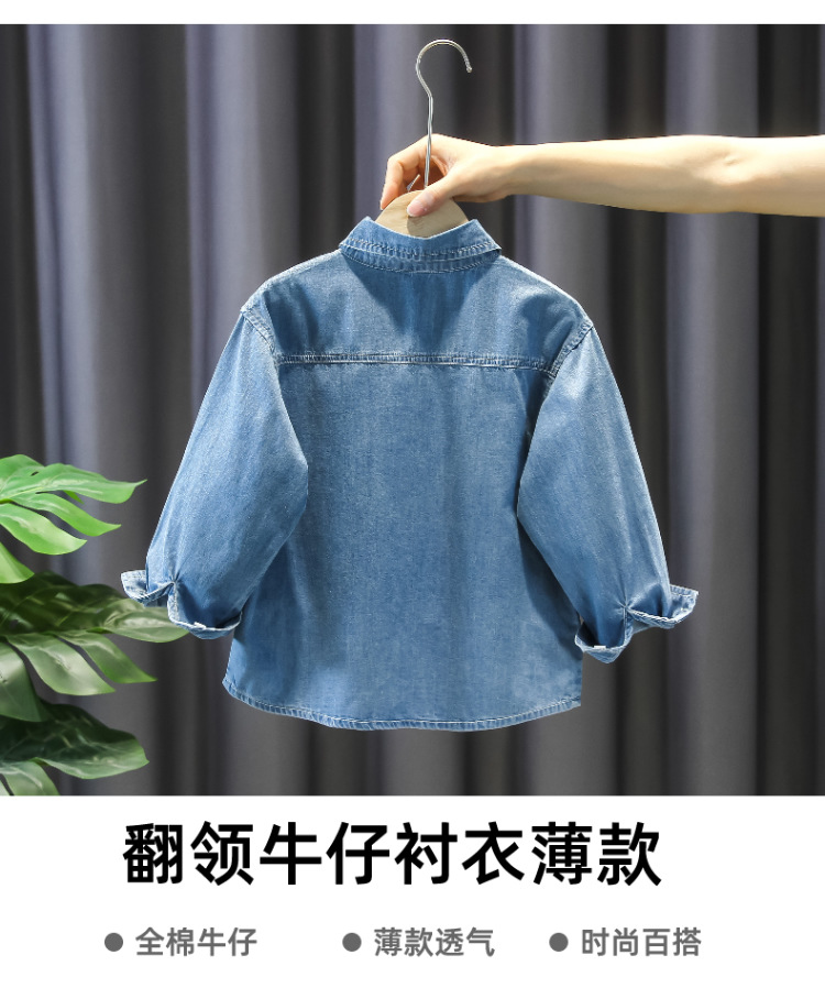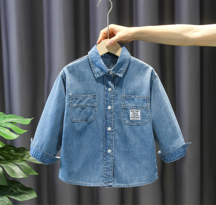 Хлопок может носить детские джинсовые рубашки Тонкий кардиган с длинными рукавами и лацканами рубашки для мальчиков хлопковые топы оптом