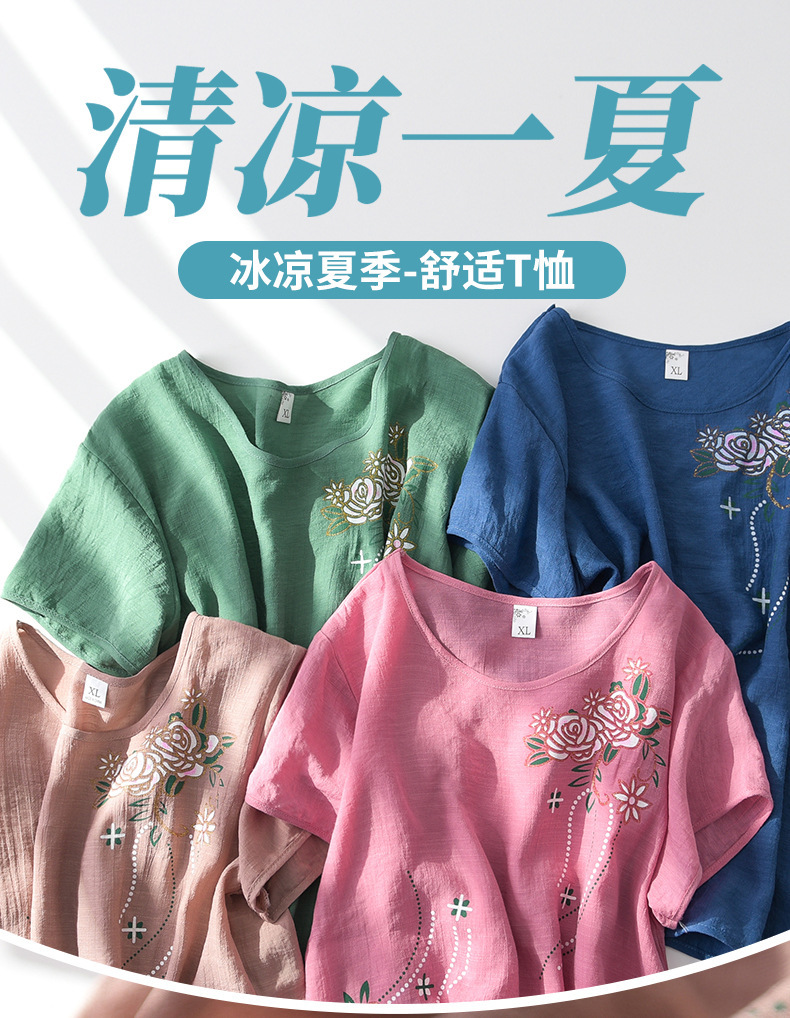 Костюм для летней одежды для матери, свободная летняя одежда для пожилых женщин с короткими рукавами и принтом, комплект из двух предметов из хлопка и льна