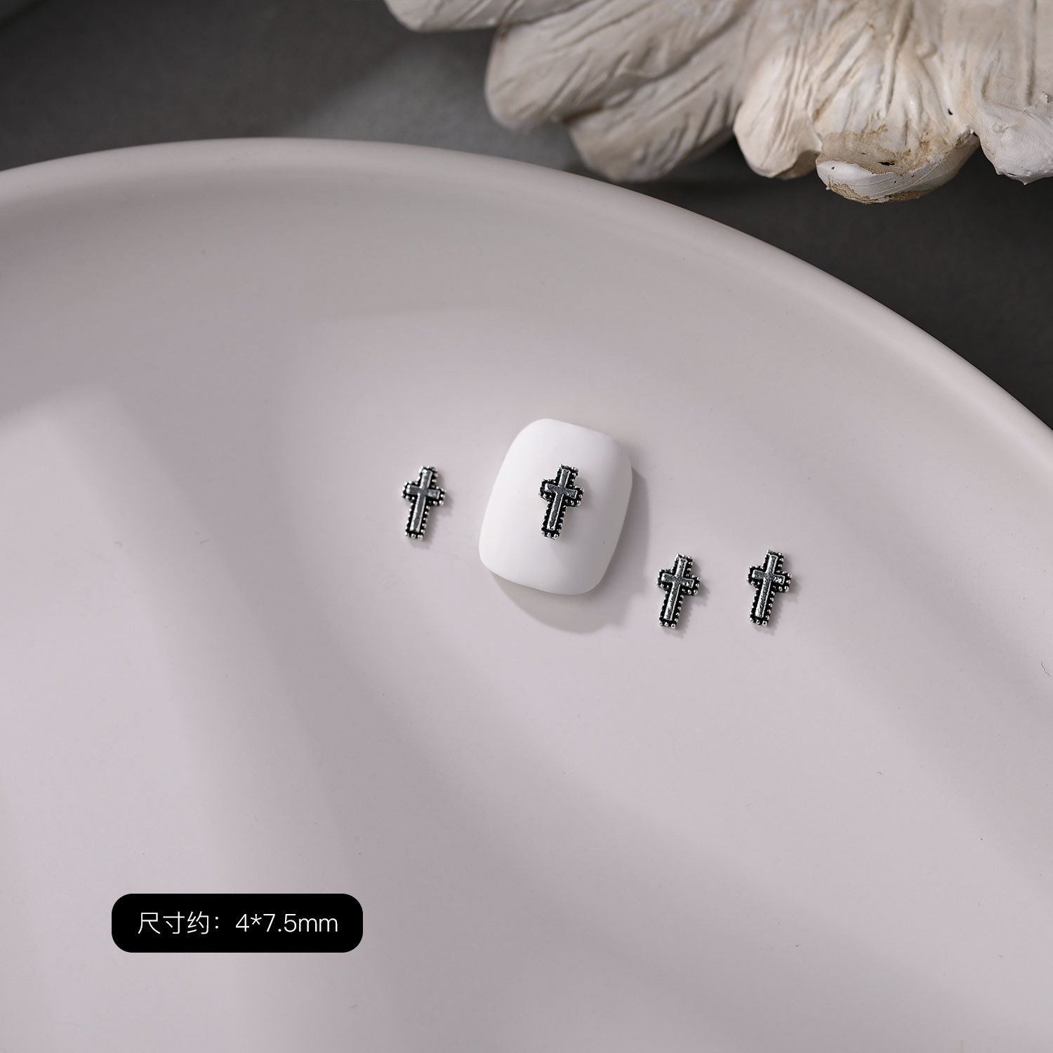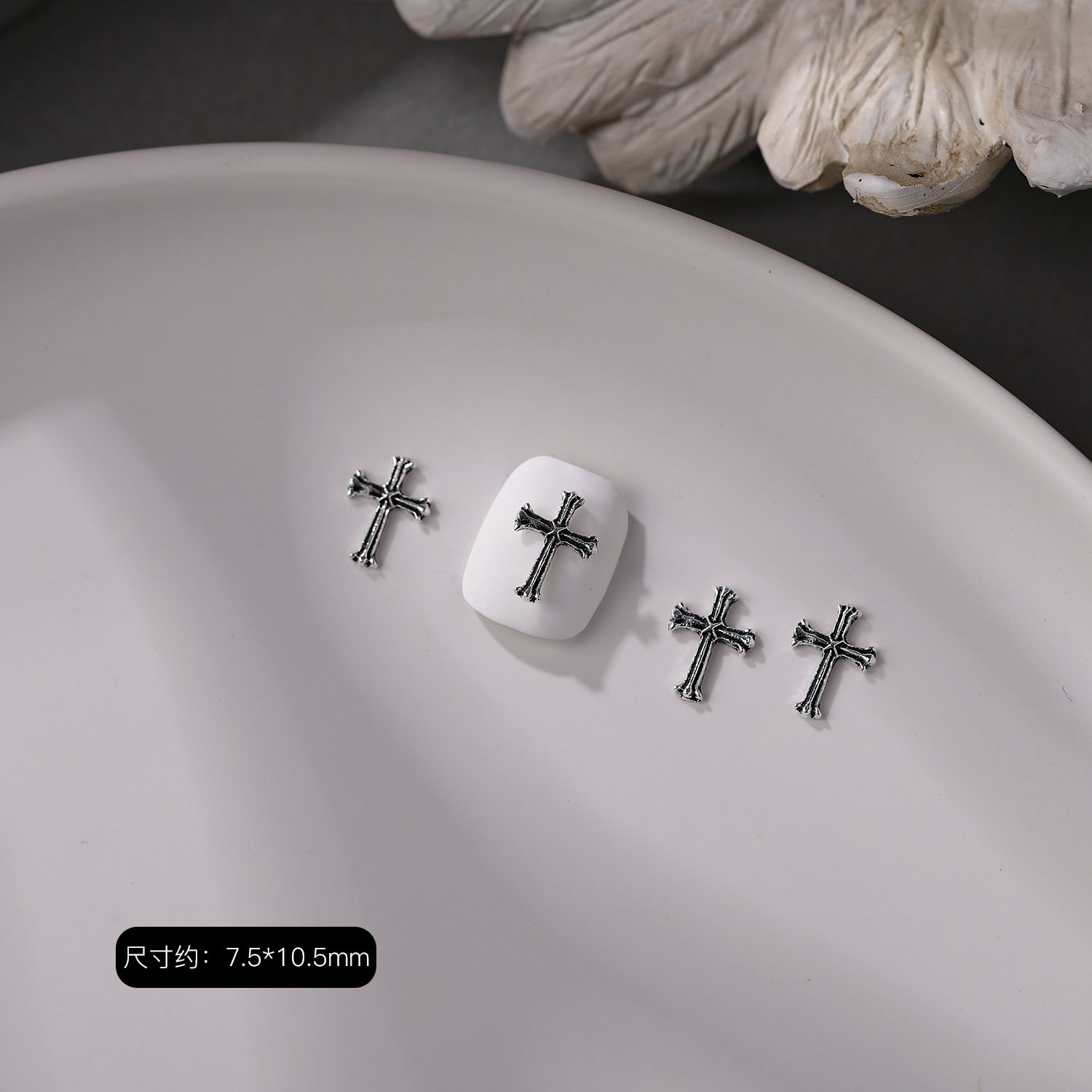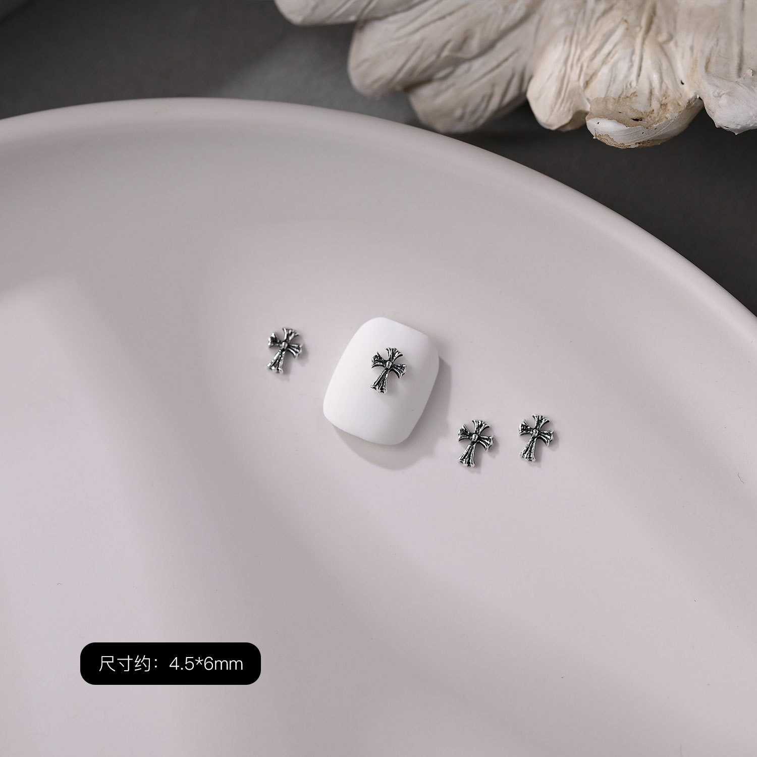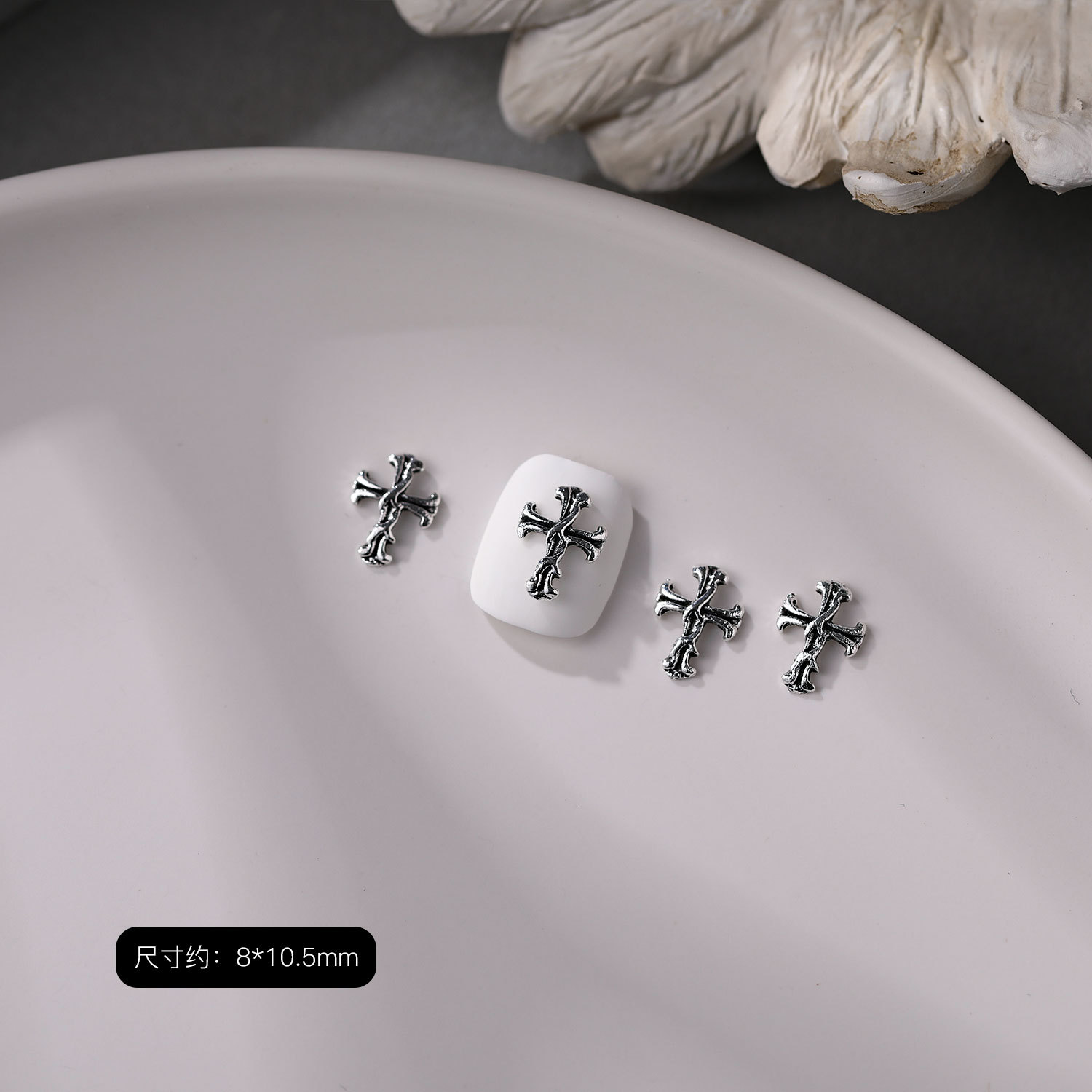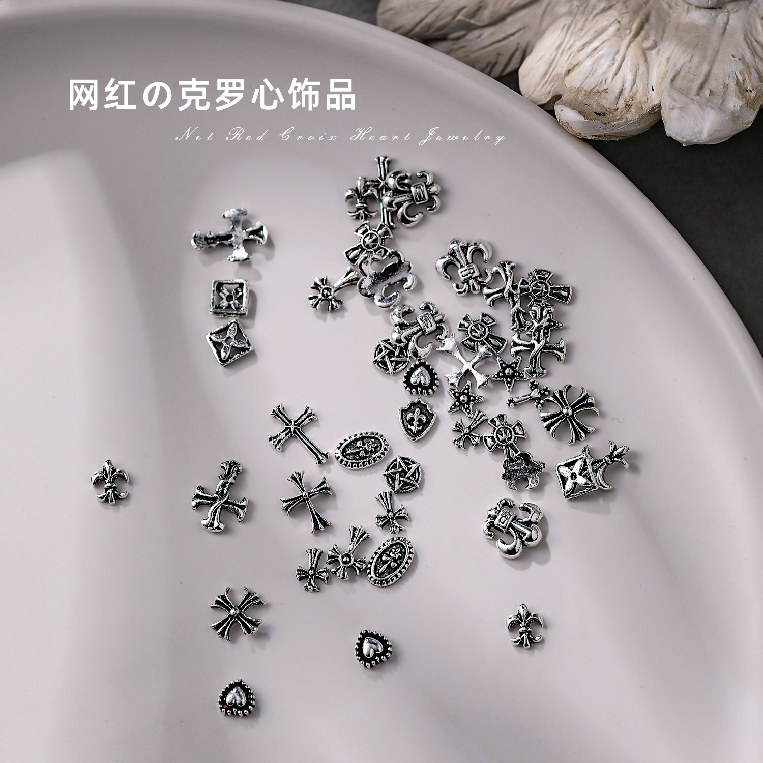 Интернет знаменитости ногтей старинные курок сердце ювелирные изделия панк стиль крест серебро темный металл ногтей аксессуары оптом