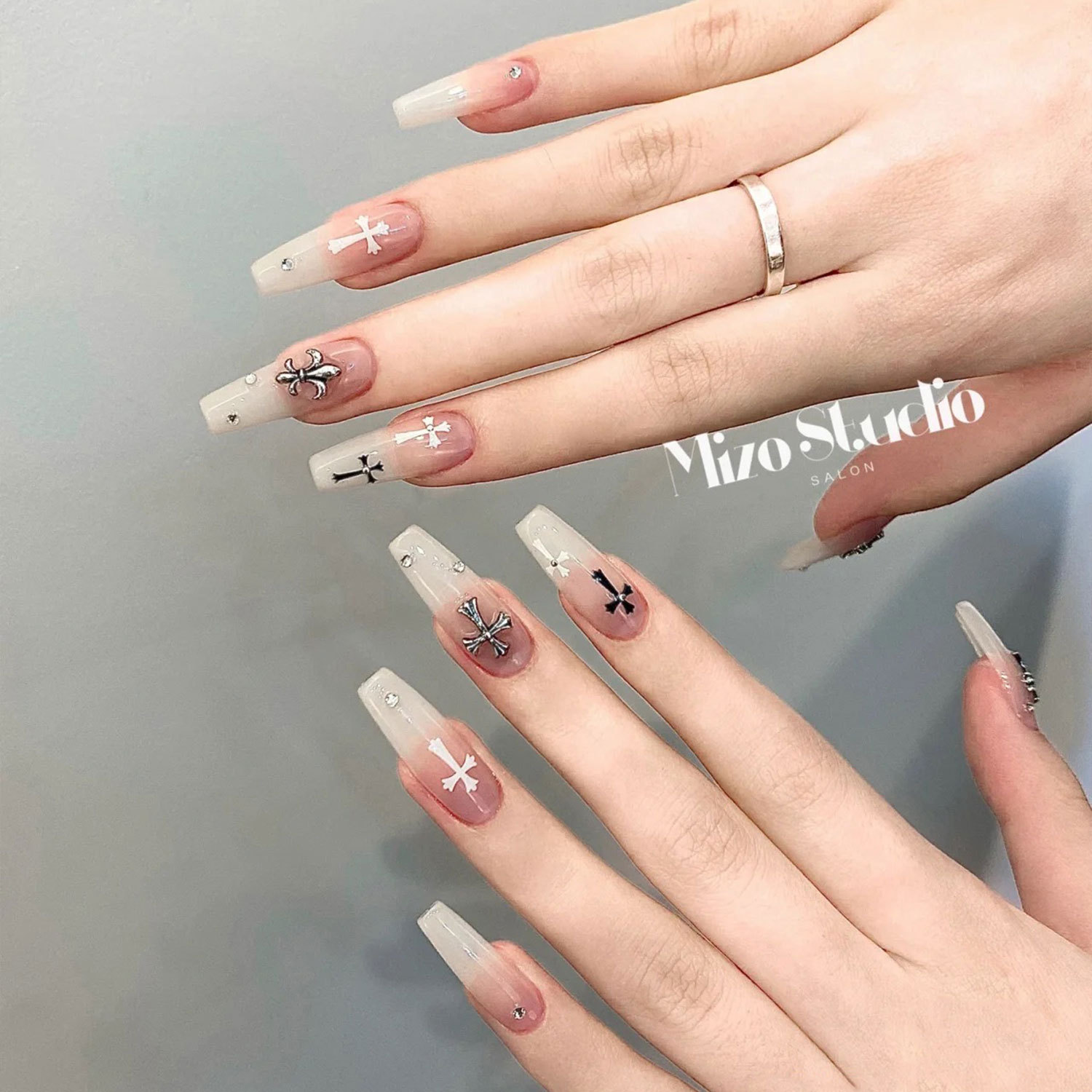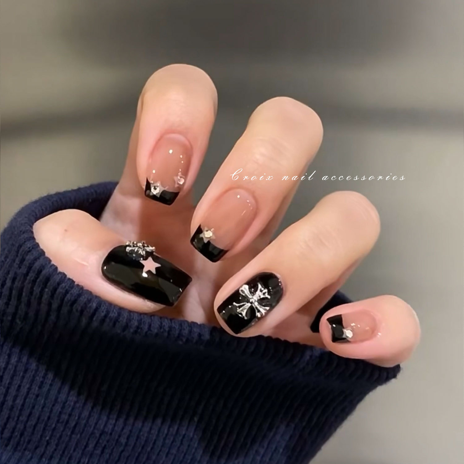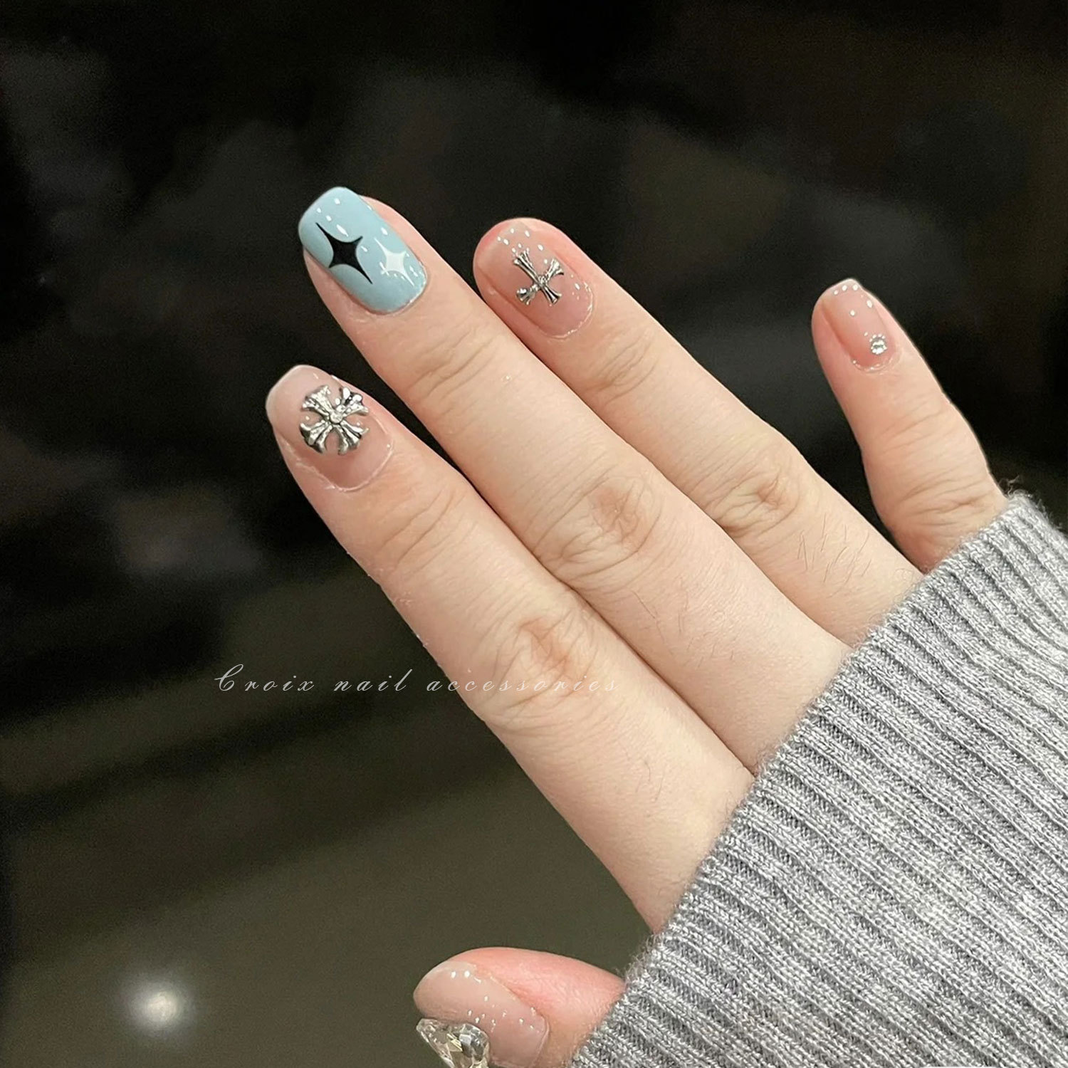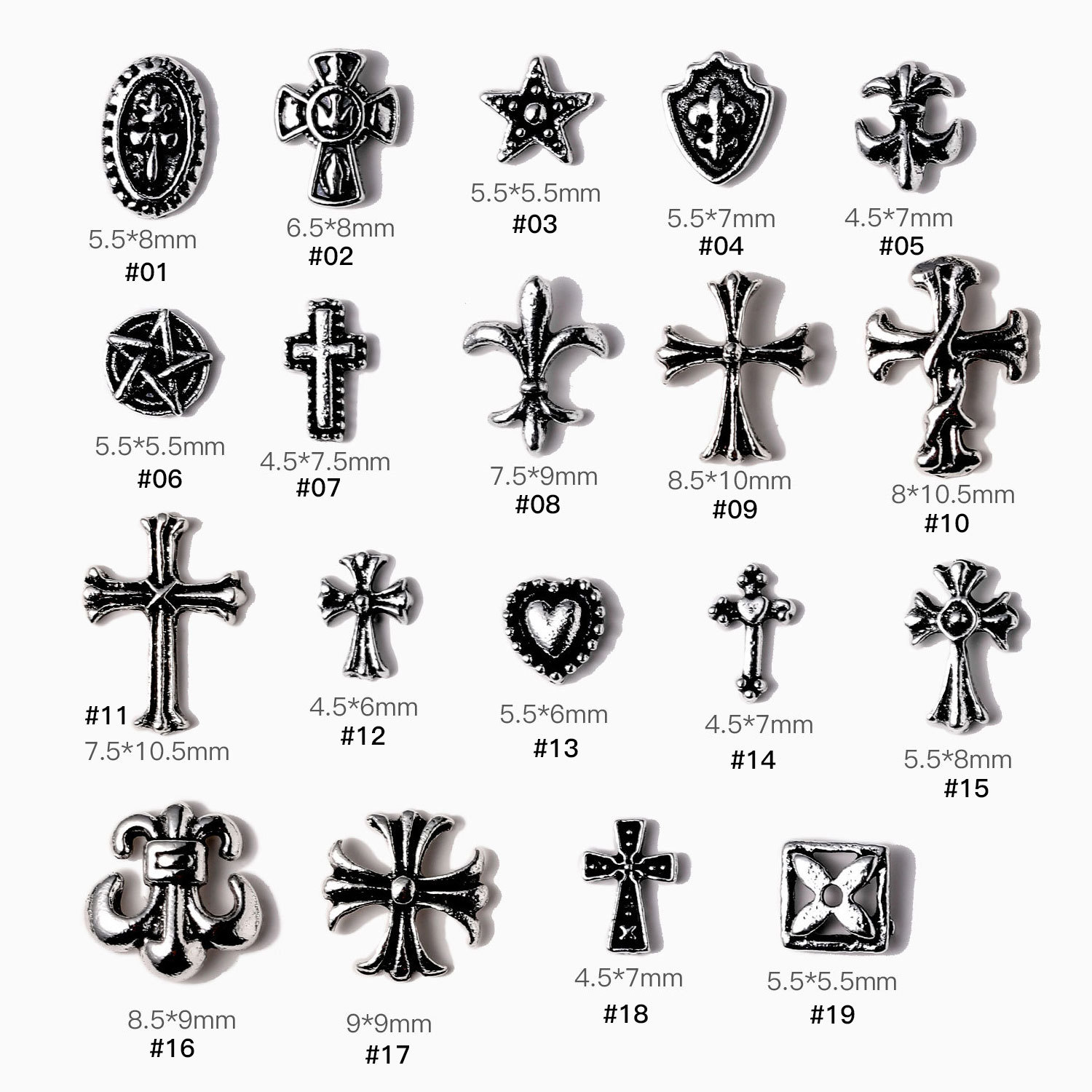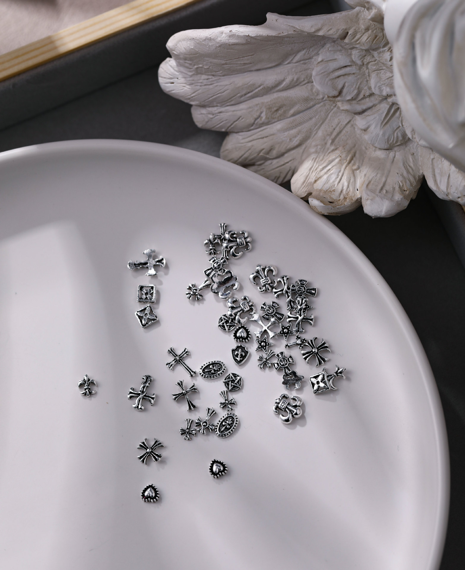 Интернет знаменитости ногтей старинные курок сердце ювелирные изделия панк стиль крест серебро темный металл ногтей аксессуары оптом