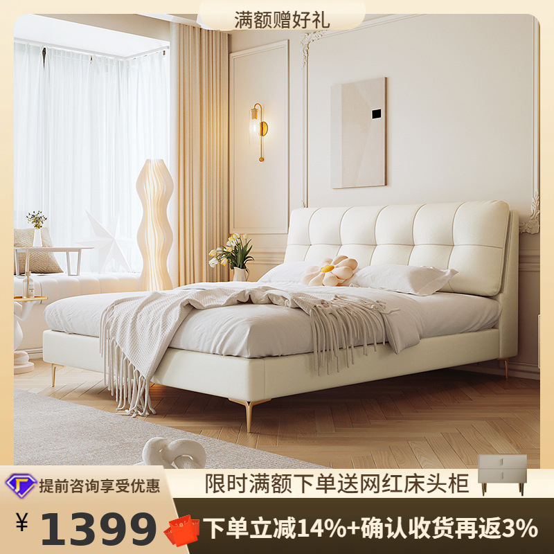 Специальная кровать Tongyu из воловьей кожи первого слоя, кожаная кровать кремового цвета, простая доступная роскошная скандинавская современная двуспальная кожаная кровать для главной спальни