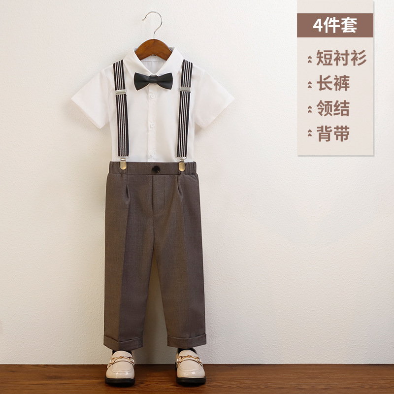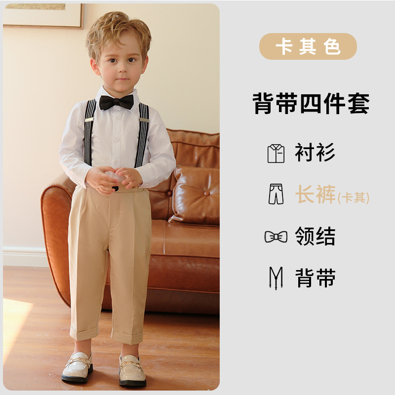 Детское платье весенне-летний костюм с британскими брюками на подтяжках, Повседневная рубашка для мальчиков, детская одежда для ведущей фотосъемки
