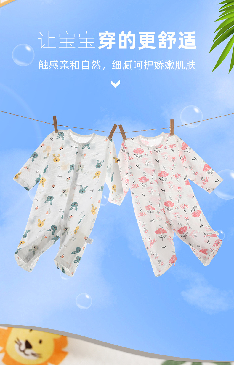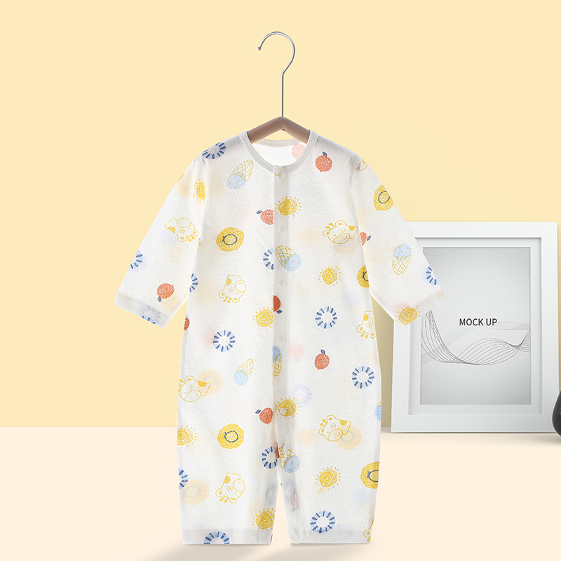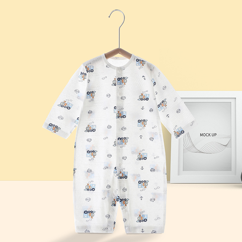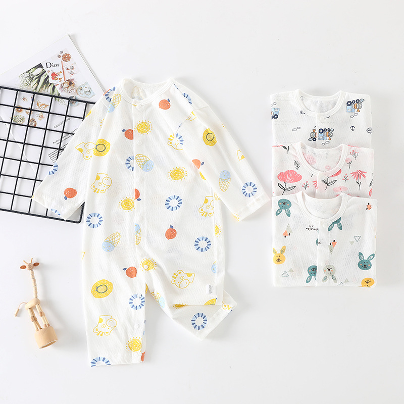 Комбинезон с длинными рукавами для новорожденных Детская пижама из чистого хлопка Одежда для кондиционирования воздуха Детская тонкая дышащая одежда для скалолазания Летняя одежда