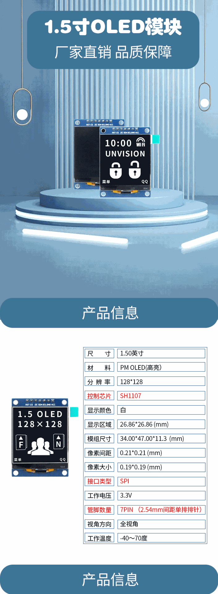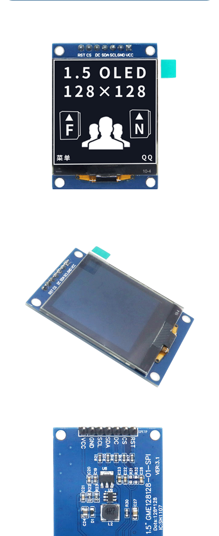 1,5-дюймовый OLED-дисплей 7-контактный модуль SPI ЖК-экран 128128 точечная матрица SH1107 монохромный интерфейс OLED