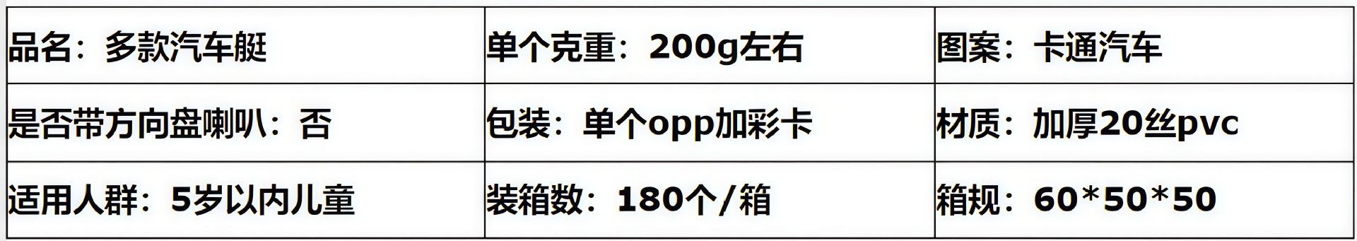 此款汽车艇是2022生产出来的火热爆款,因款式新颖,造型独特,深受广大宝宝的喜爱,可在游泳馆,母婴店,个人家庭,池塘,水库,水池里使用,宝宝把两只脚插入汽车艇的2个孔中,坐在游泳艇里面,脚部可以用力蹬来回晃动,双手也可以自由的划水娱乐,功能性很全,可以促进宝宝的手脑结合能力,还能达到促进发育强身健体的好处。。